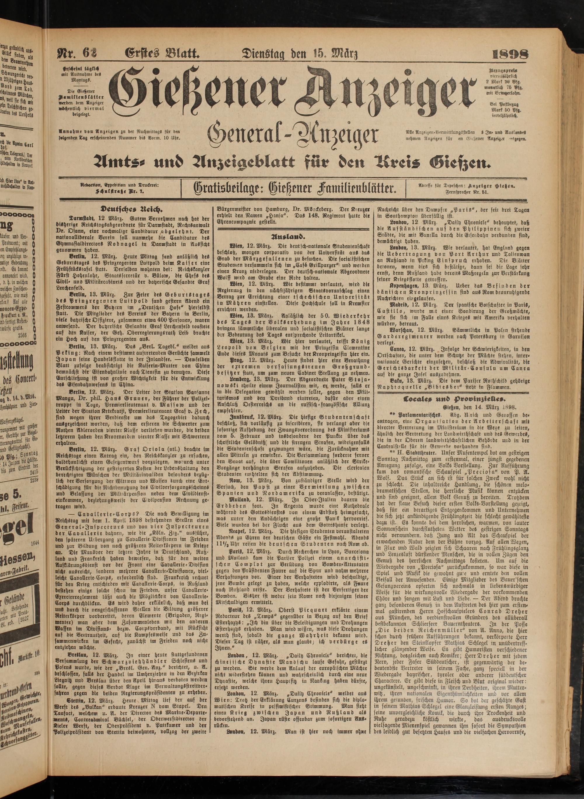 15.3.1898 Erstes Blatt