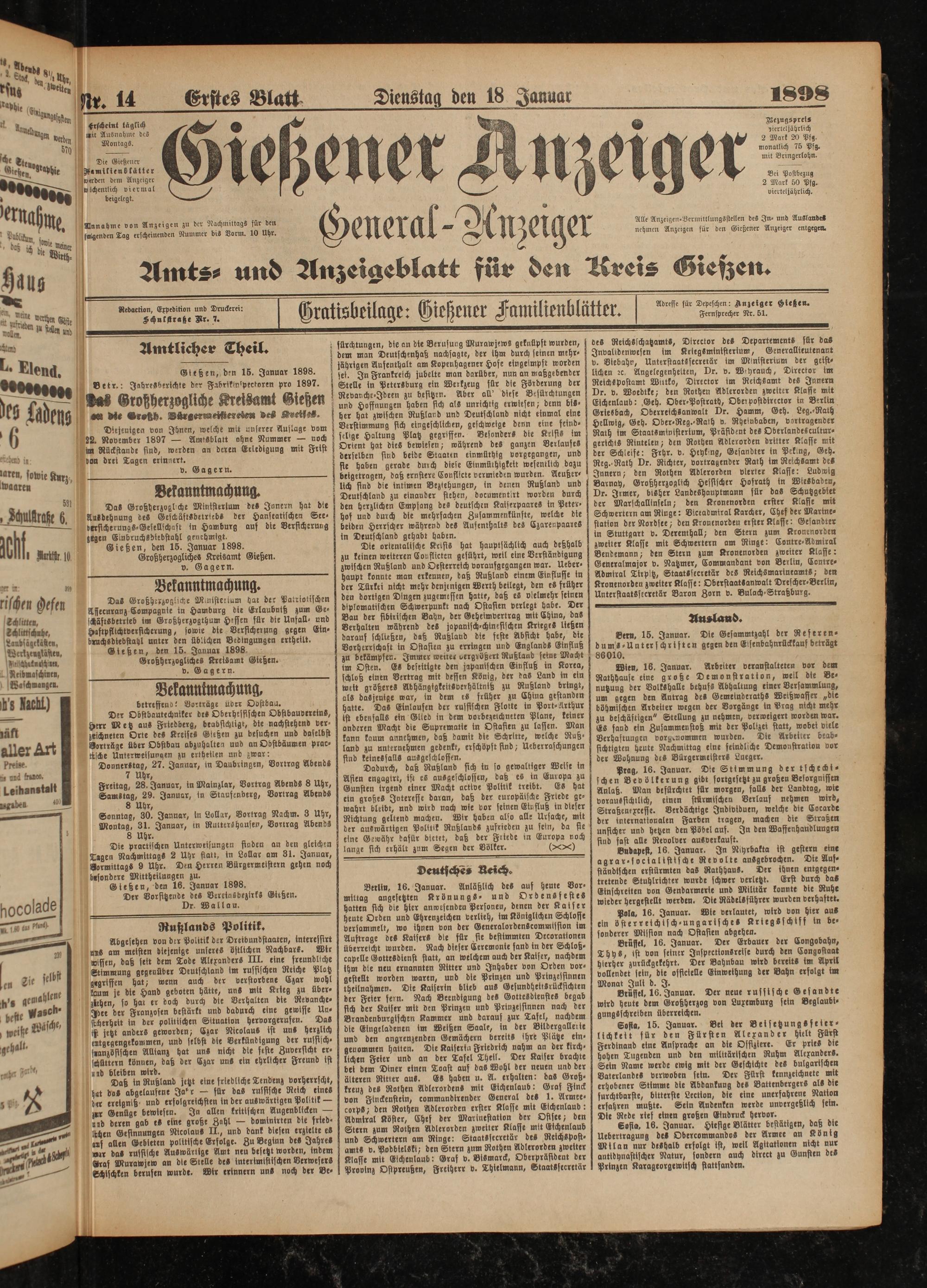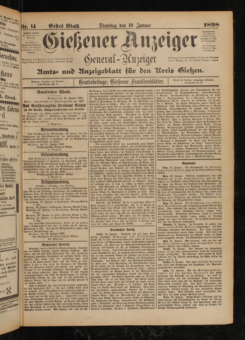 18.1.1898 Erstes Blatt