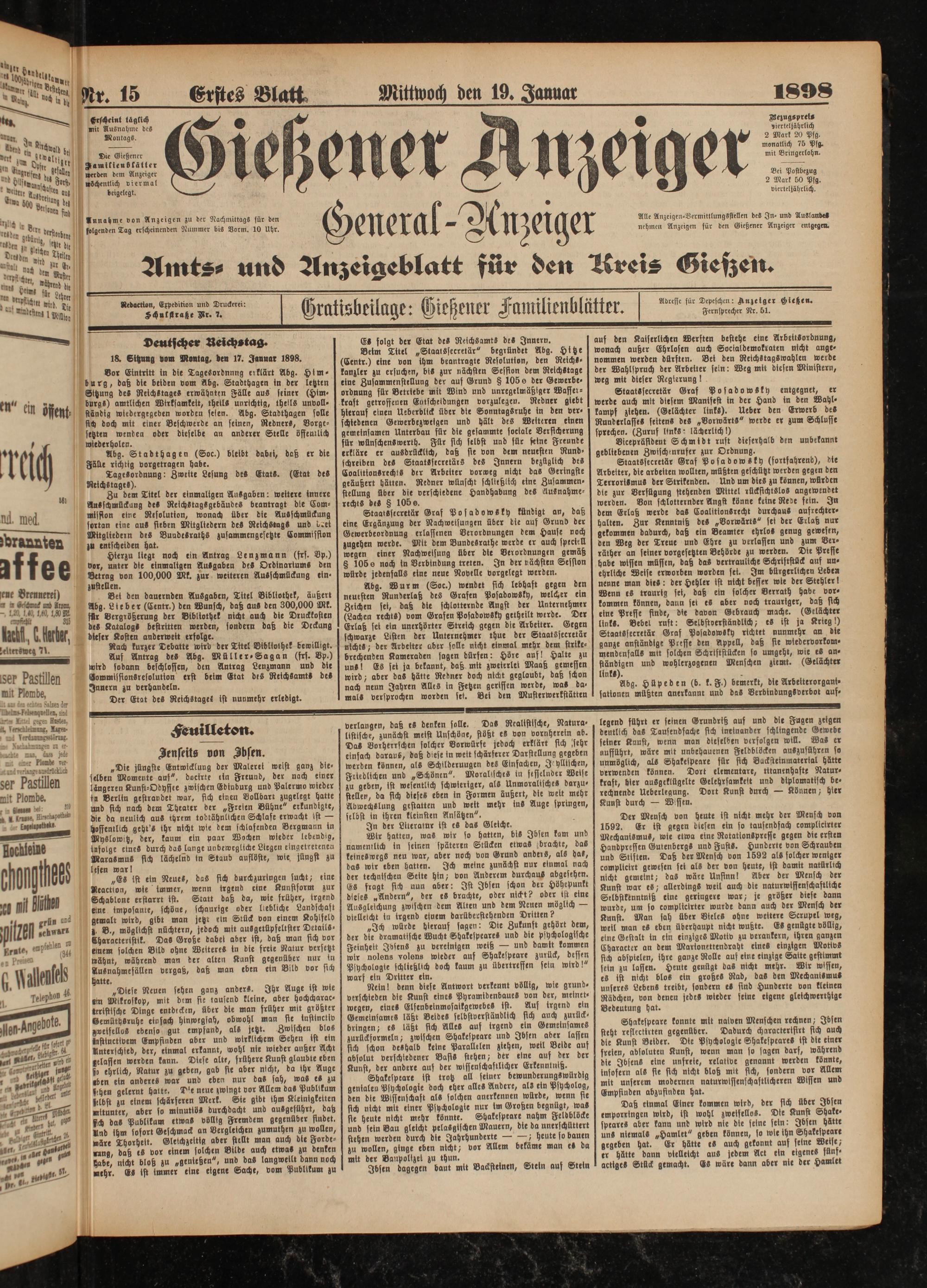 19.1.1898 Erstes Blatt