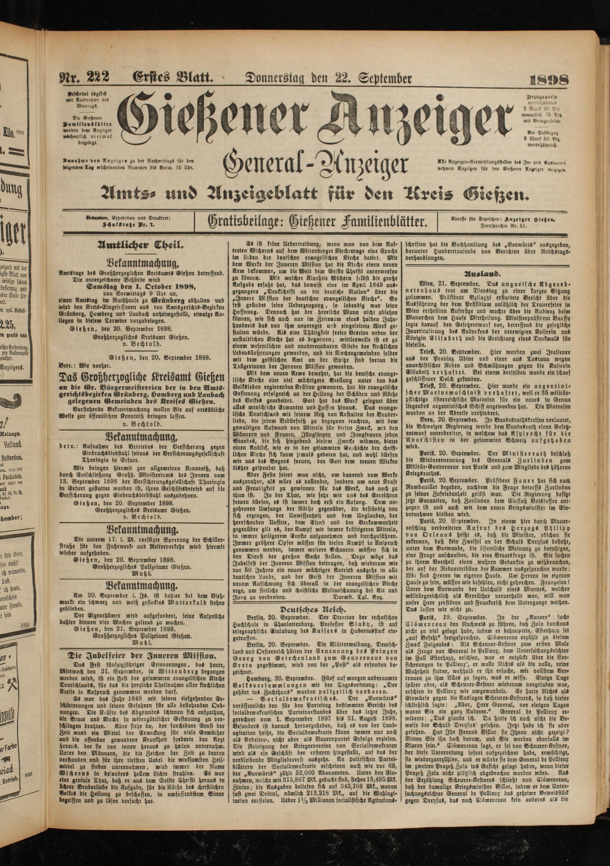 22.9.1898 Erstes Blatt