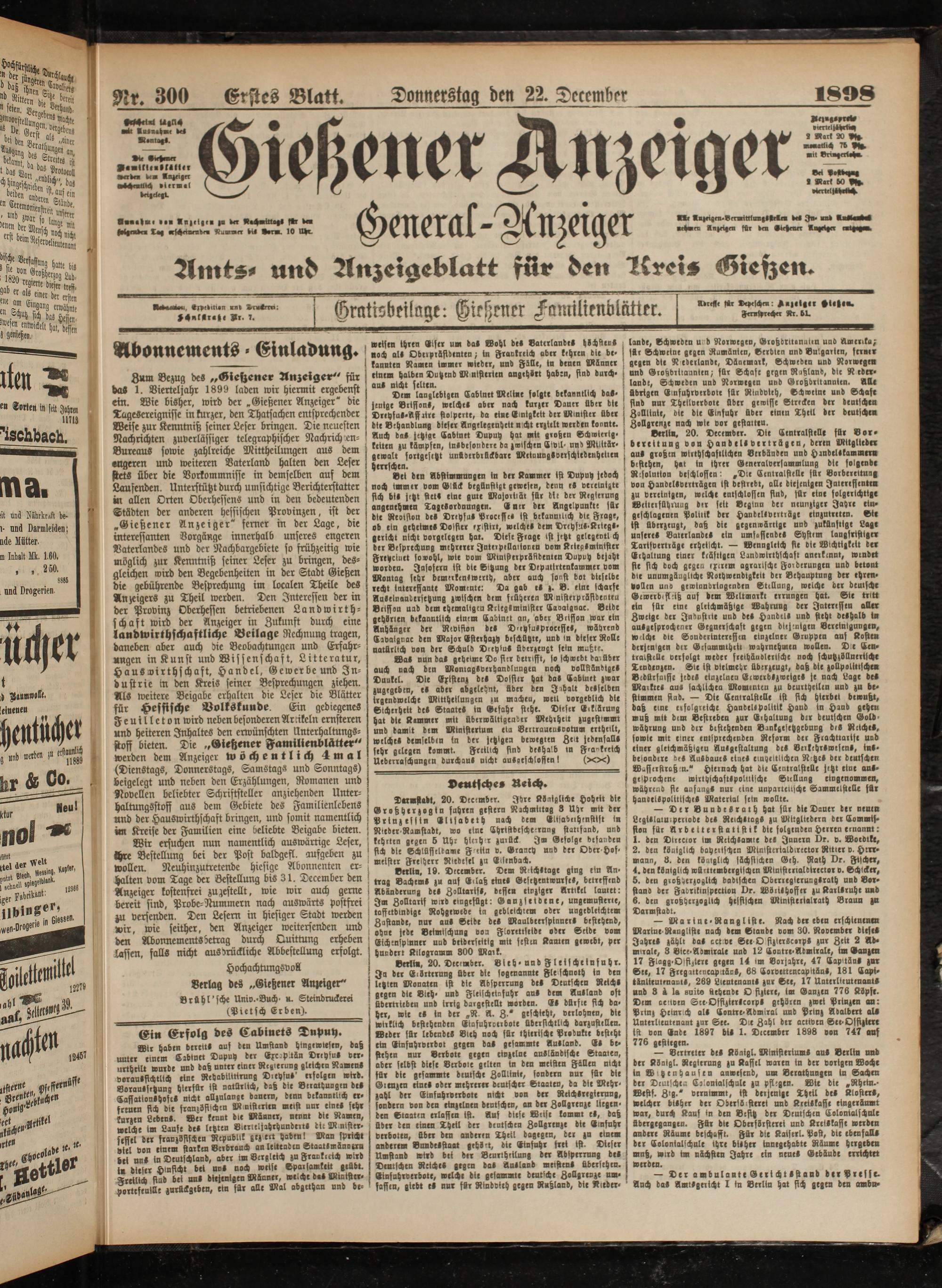 22.12.1898 Erstes Blatt