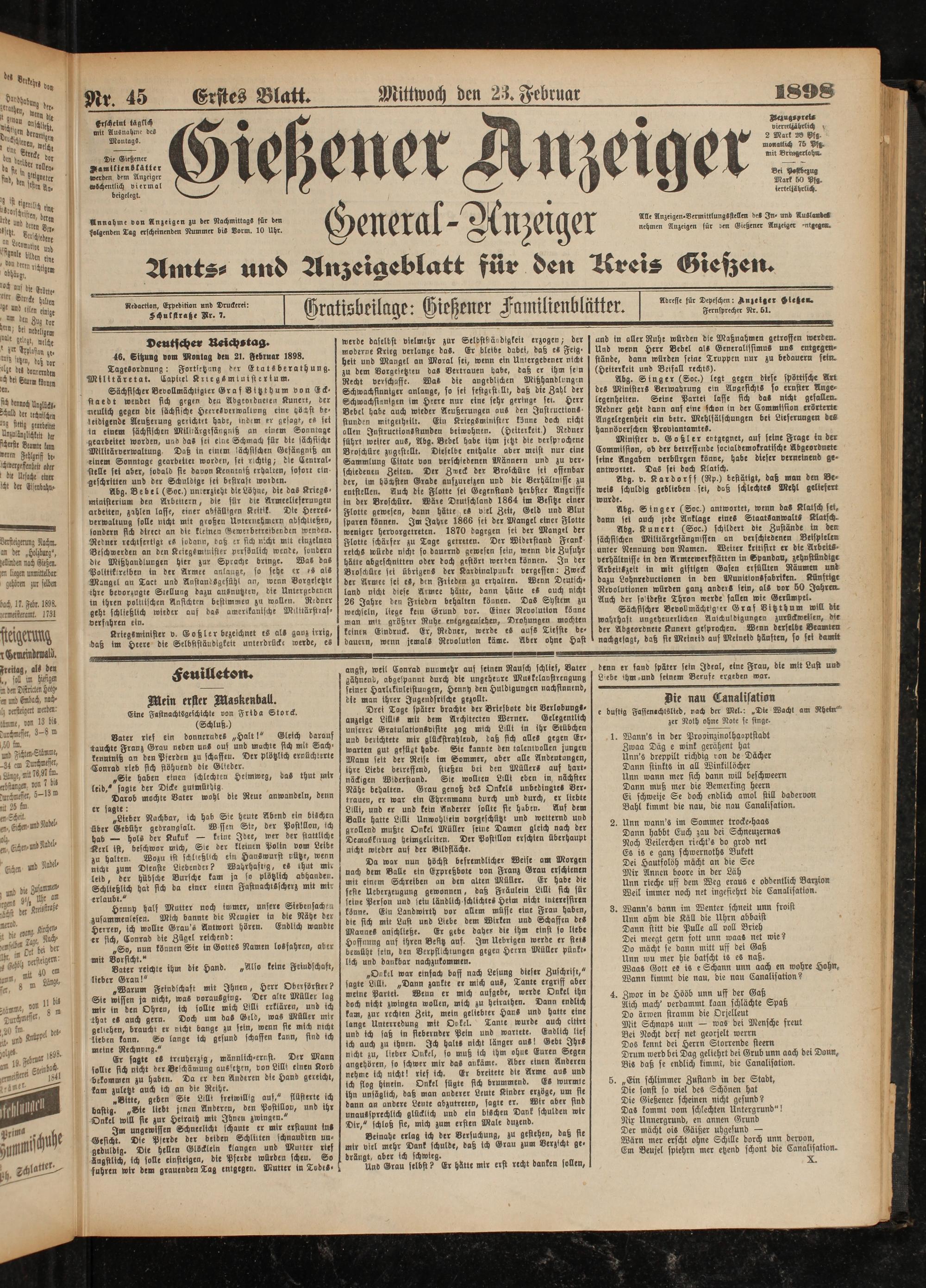 23.2.1898 Erstes Blatt