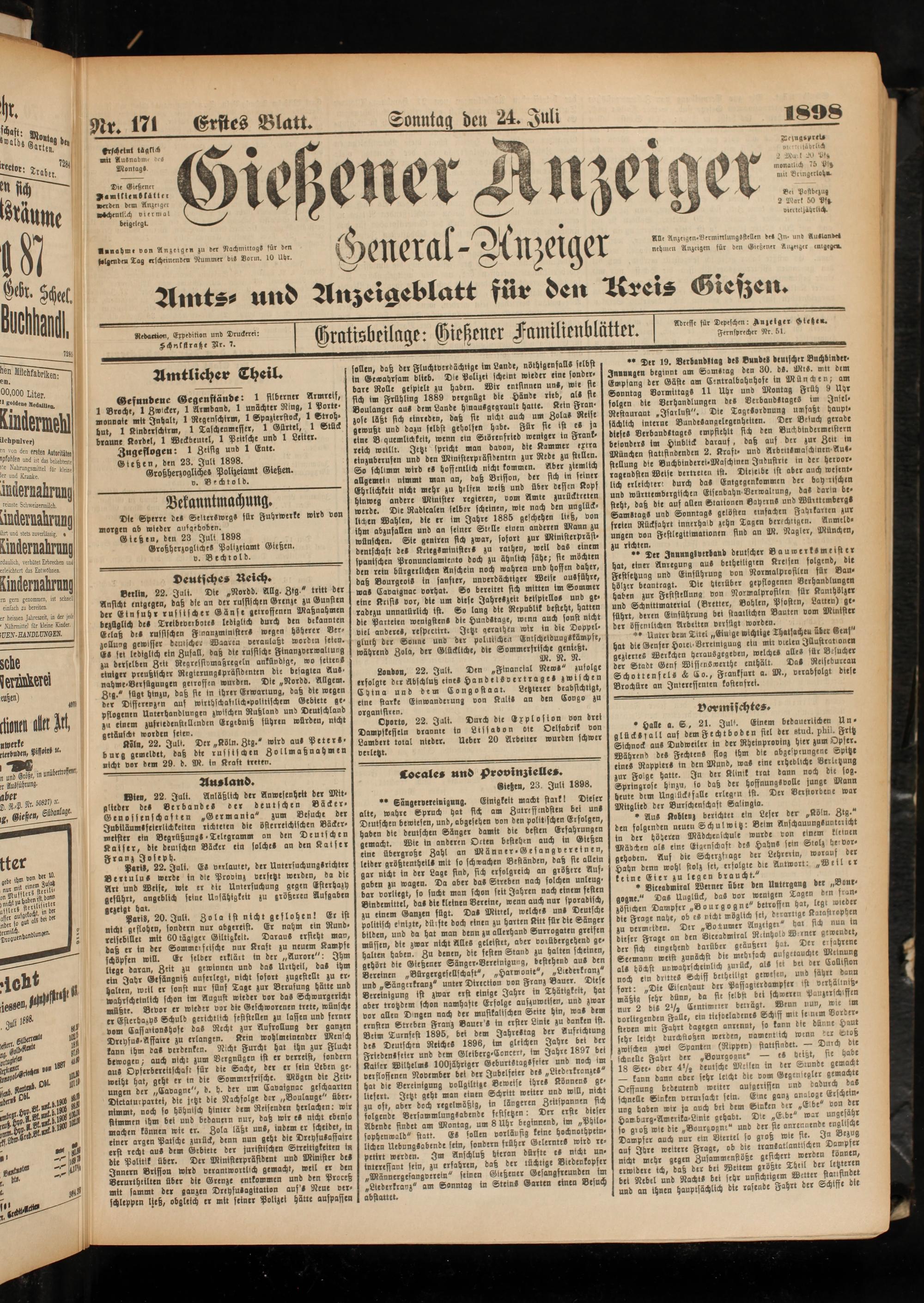 24.7.1898 Erstes Blatt