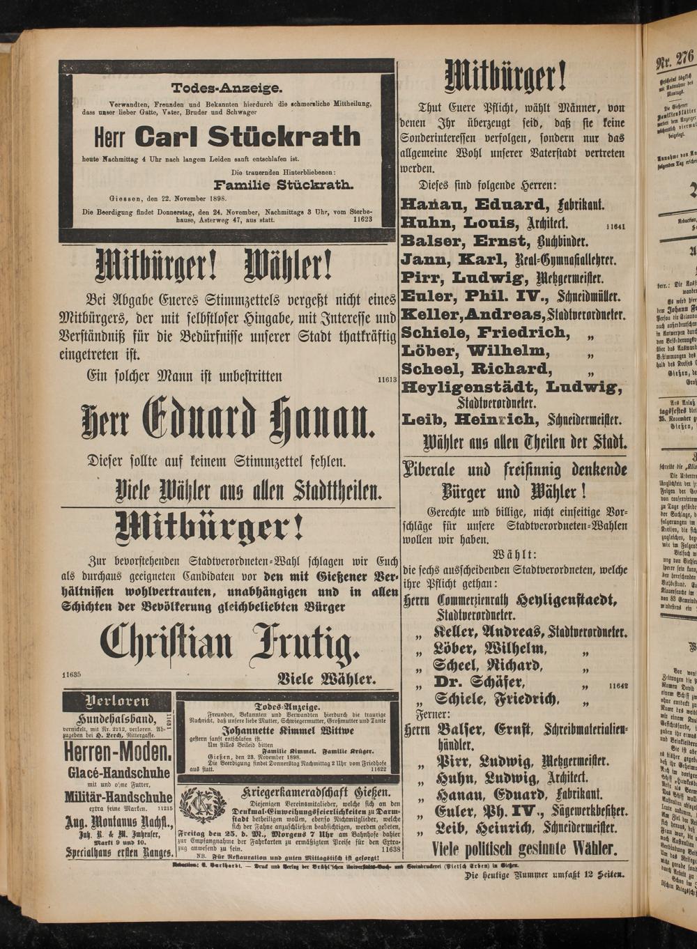 24.11.1898 Erstes Blatt