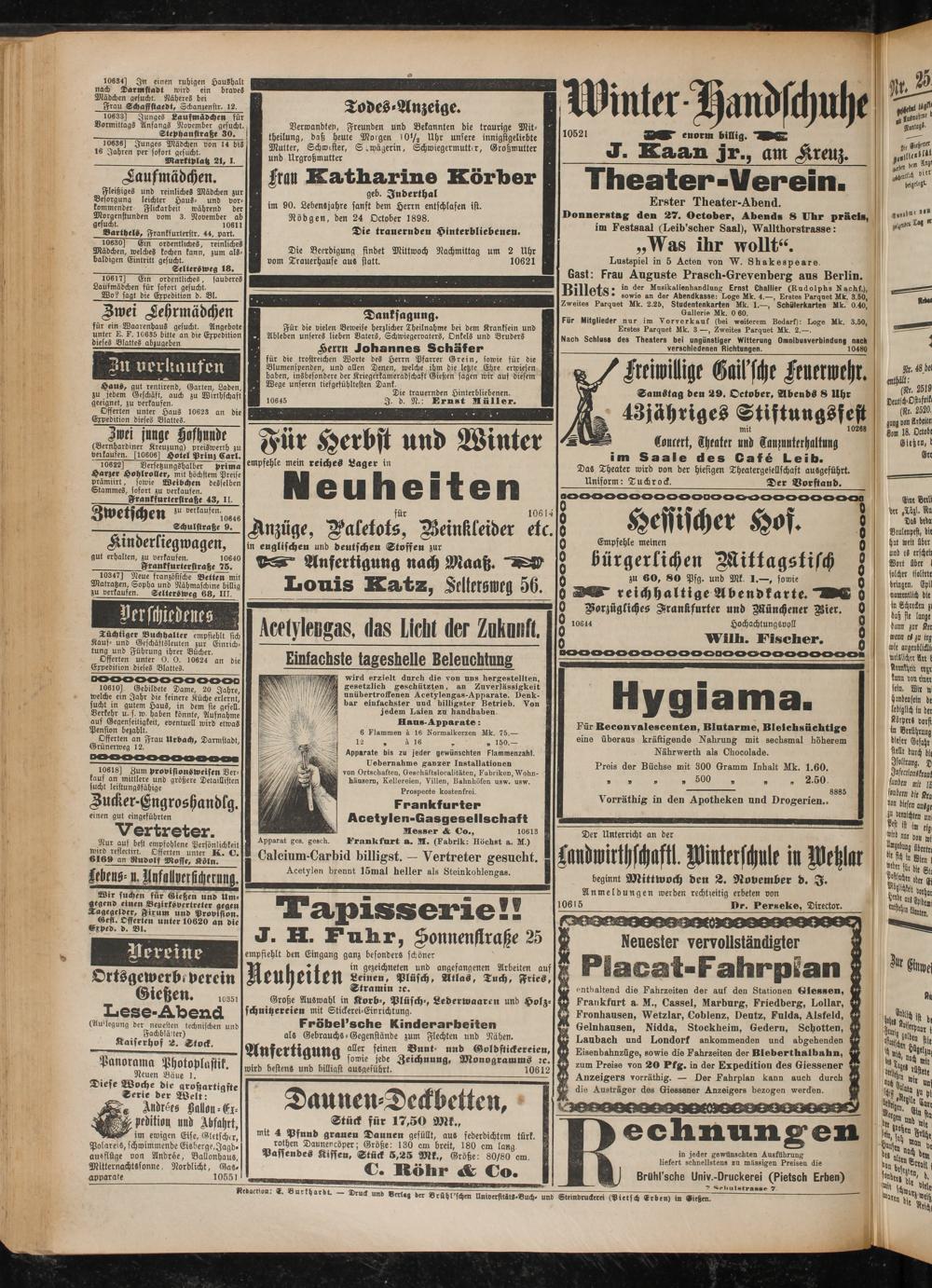 26.10.1898 Erstes Blatt
