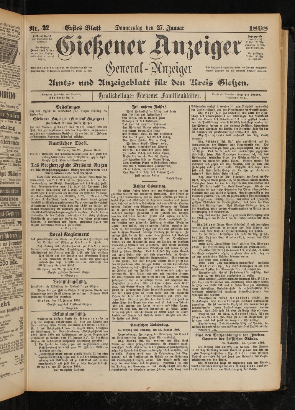 27.1.1898 Erstes Blatt