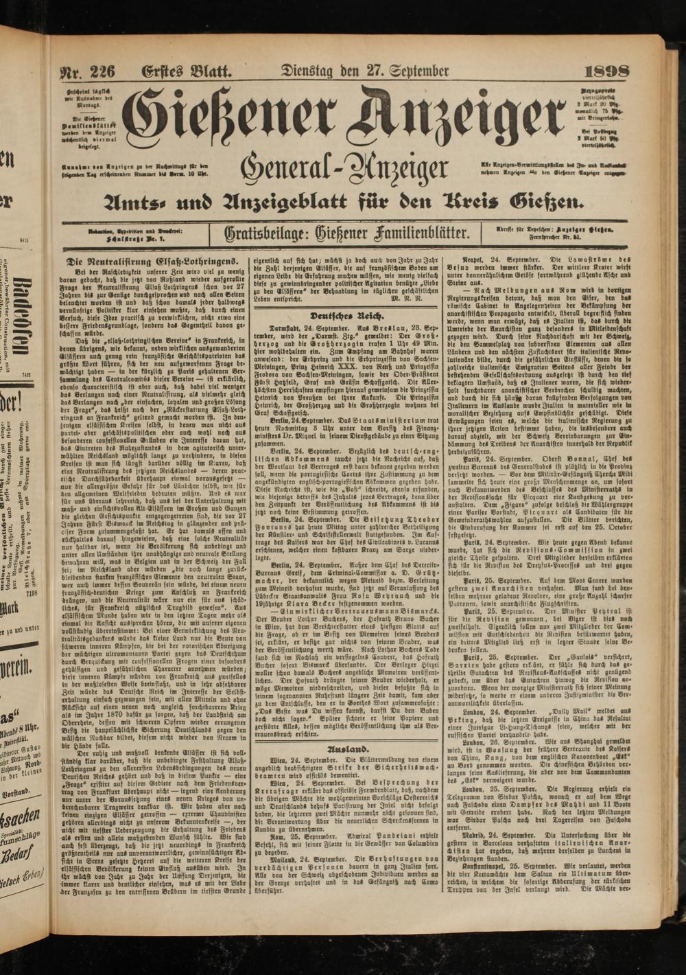 27.9.1898 Erstes Blatt
