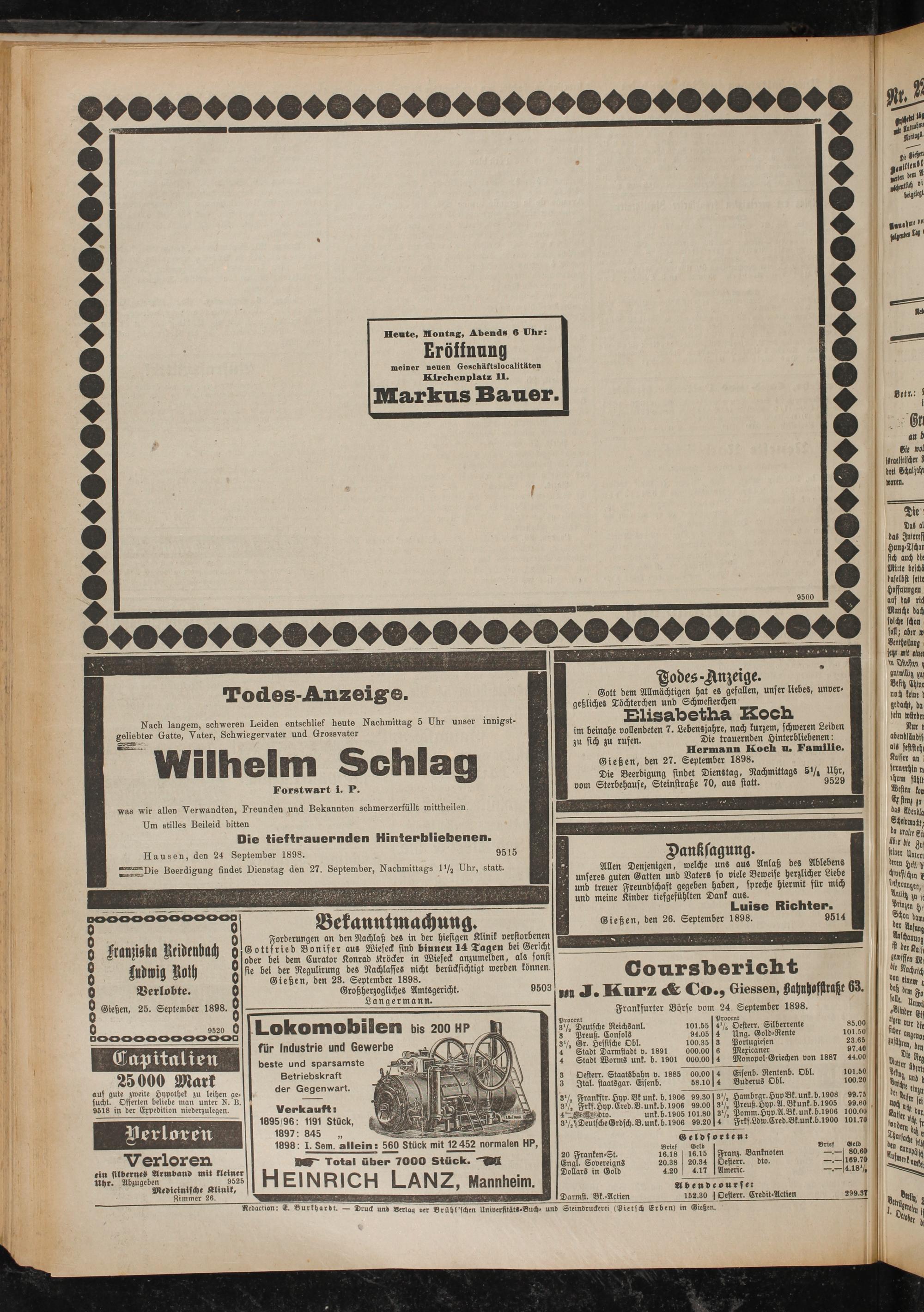 27.9.1898 Erstes Blatt
