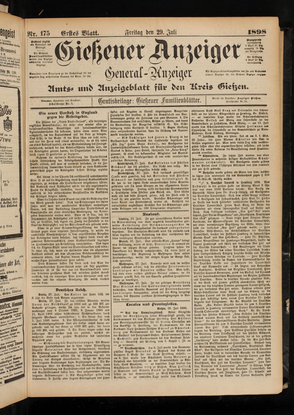 29.7.1898 Erstes Blatt