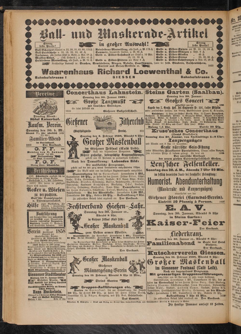 30.1.1898 Erstes Blatt