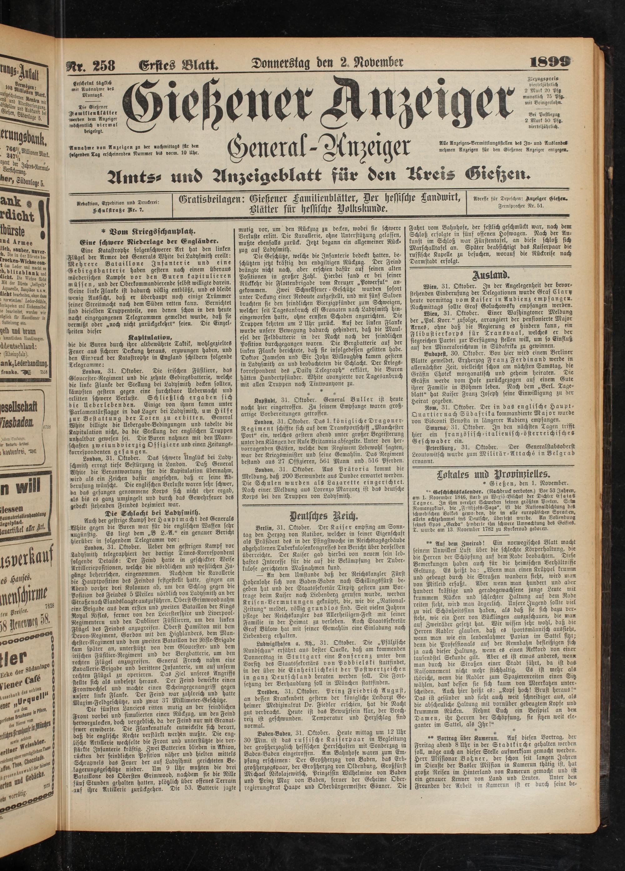 2.11.1899 Erstes Blatt