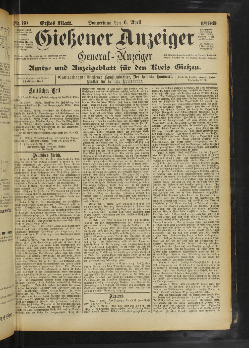6.4.1899 Erstes Blatt