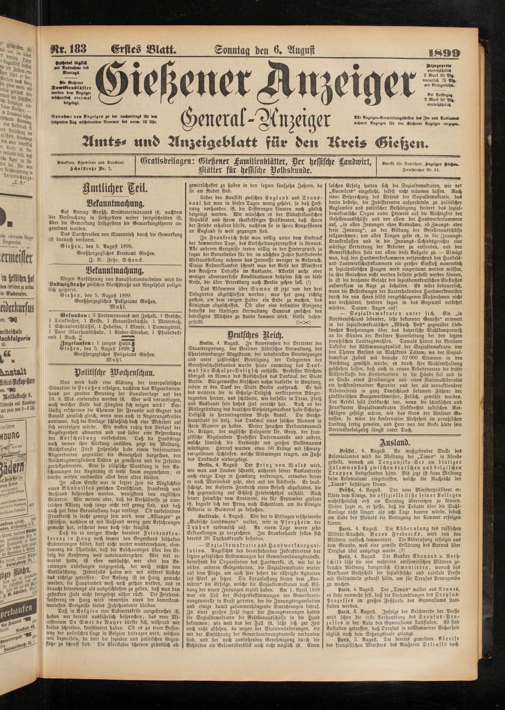 6.8.1899 Erstes Blatt