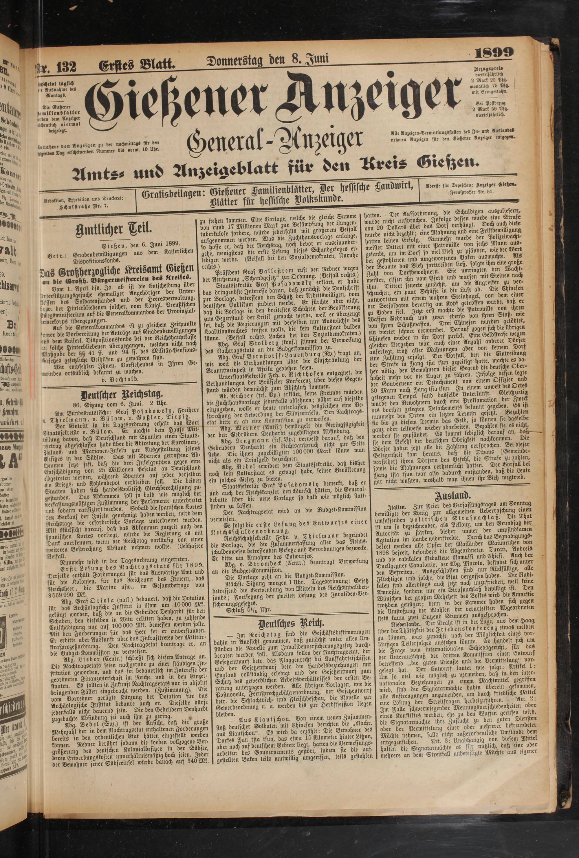 8.6.1899 Erstes Blatt