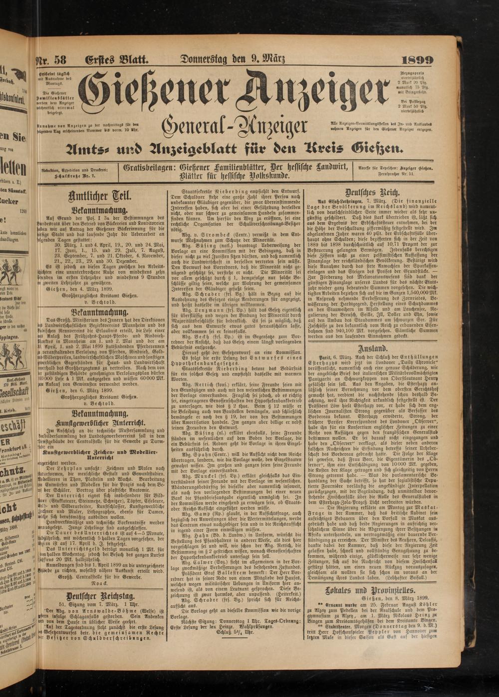 9.3.1899 Erstes Blatt