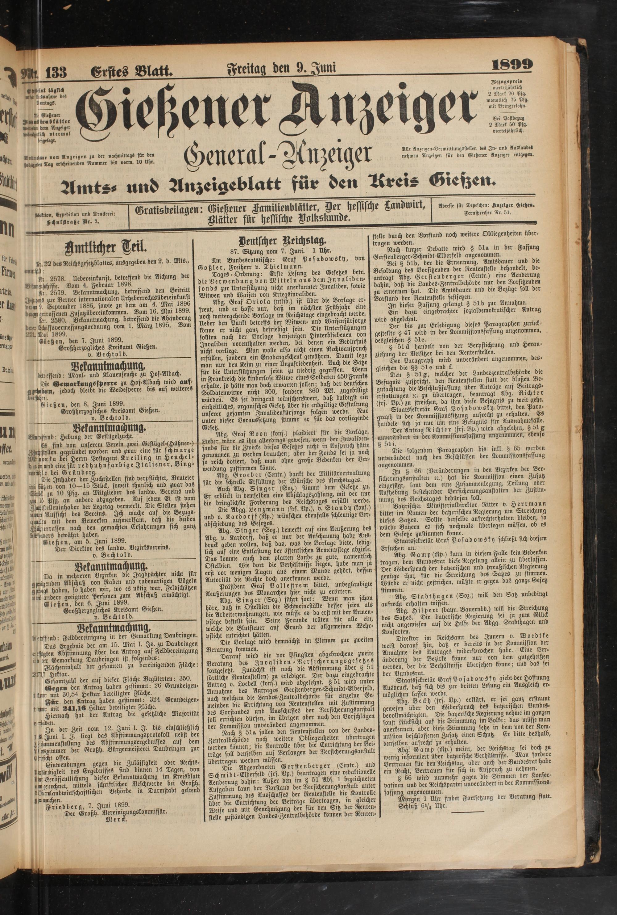 9.6.1899 Erstes Blatt