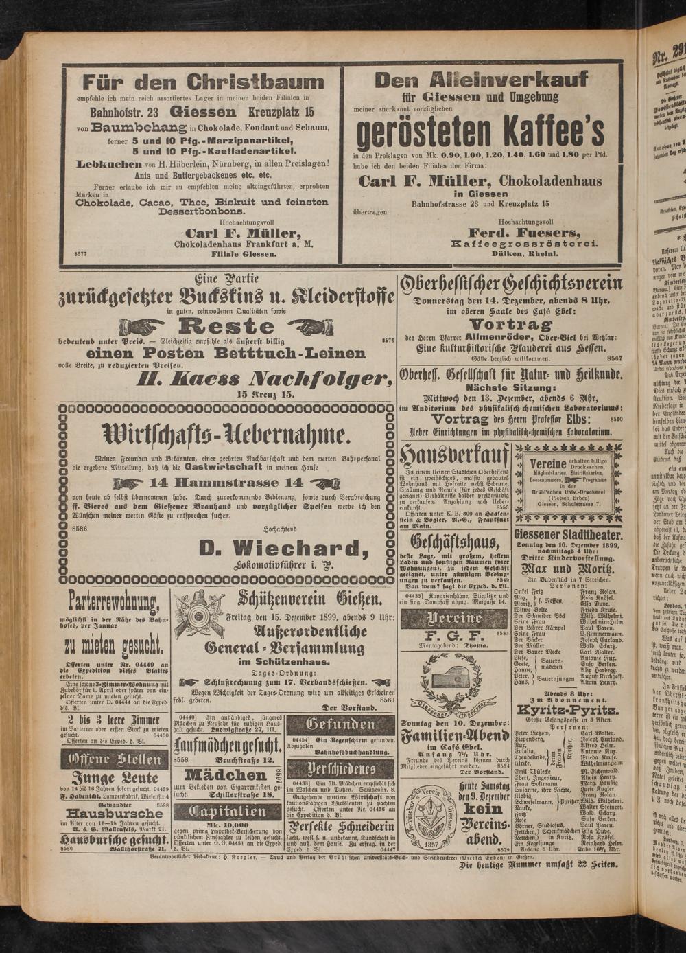 10.12.1899 Erstes Blatt