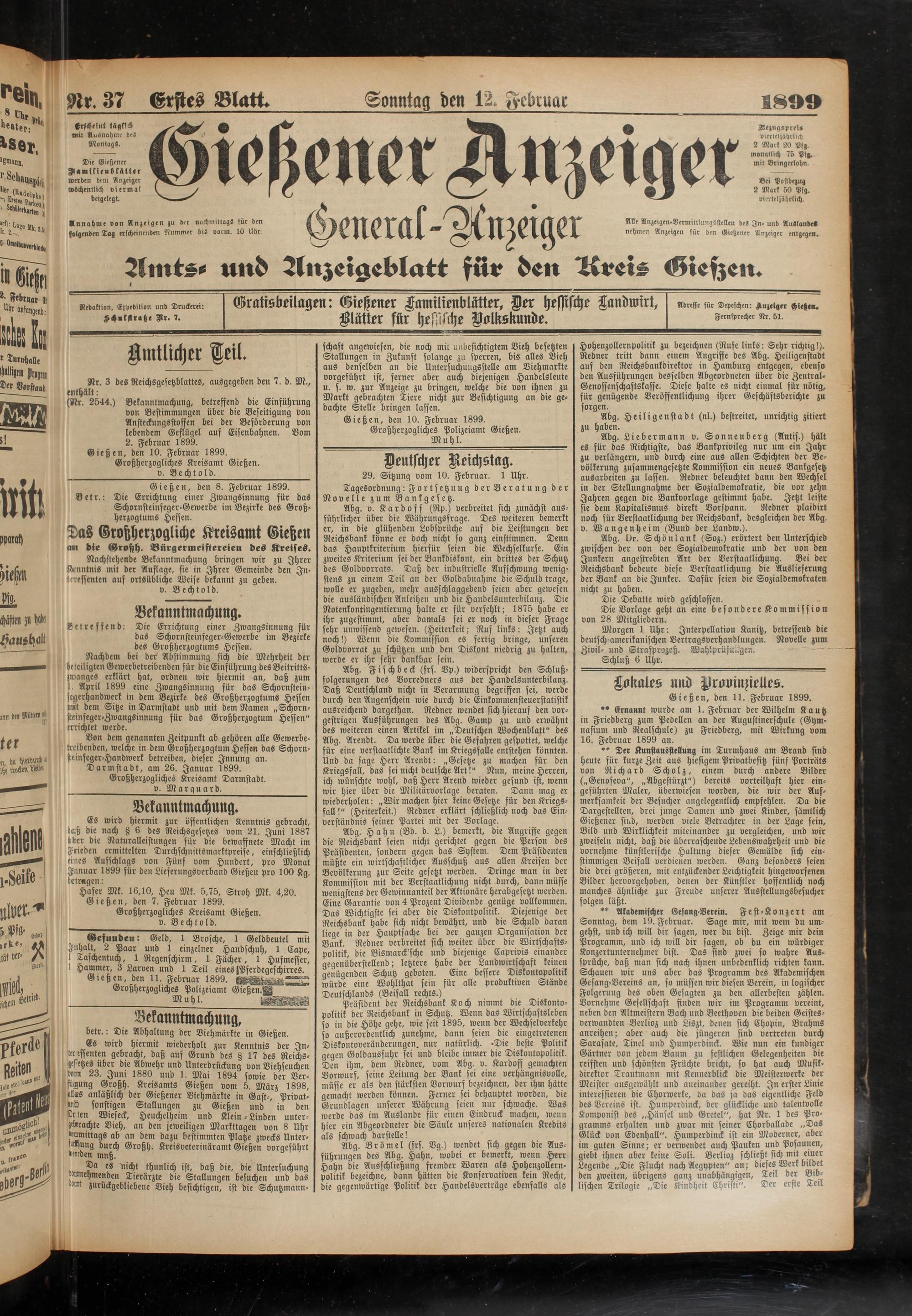 12.2.1899 Erstes Blatt