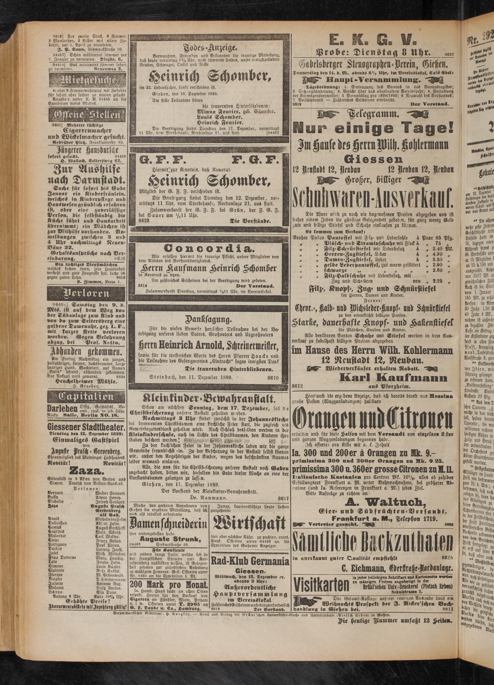 12.12.1899 Erstes Blatt