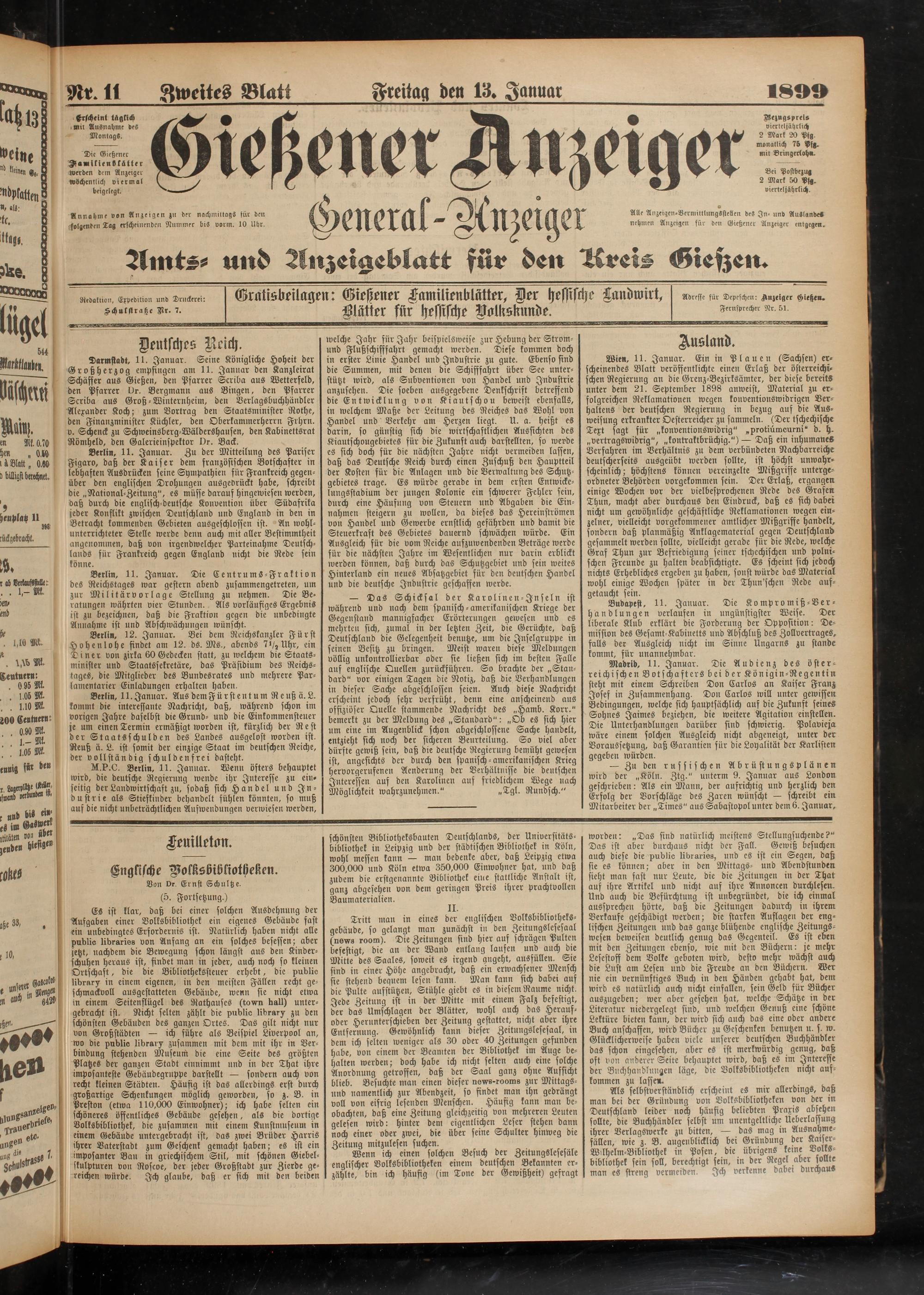 13.1.1899 Zweites Blatt