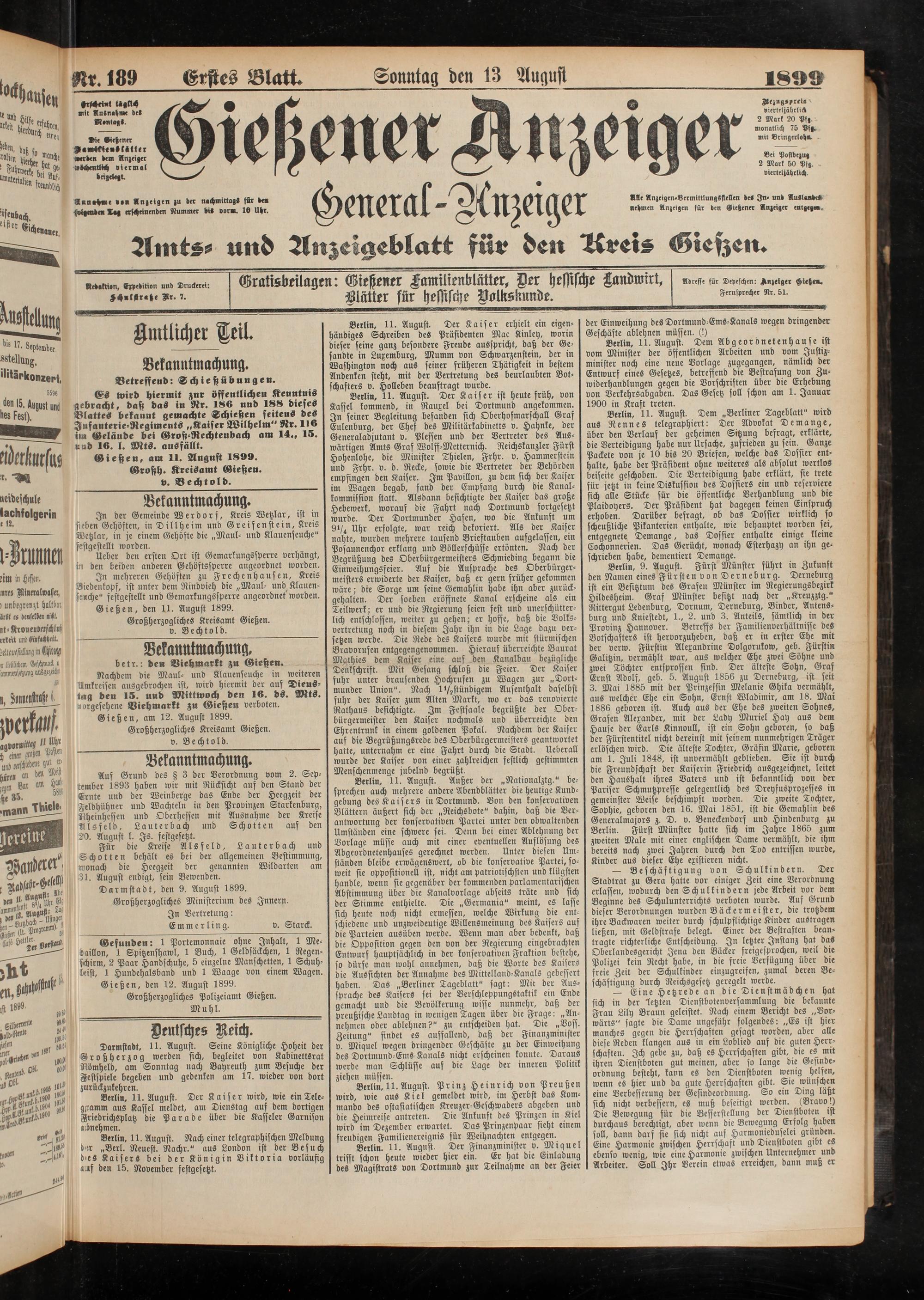 13.8.1899 Erstes Blatt