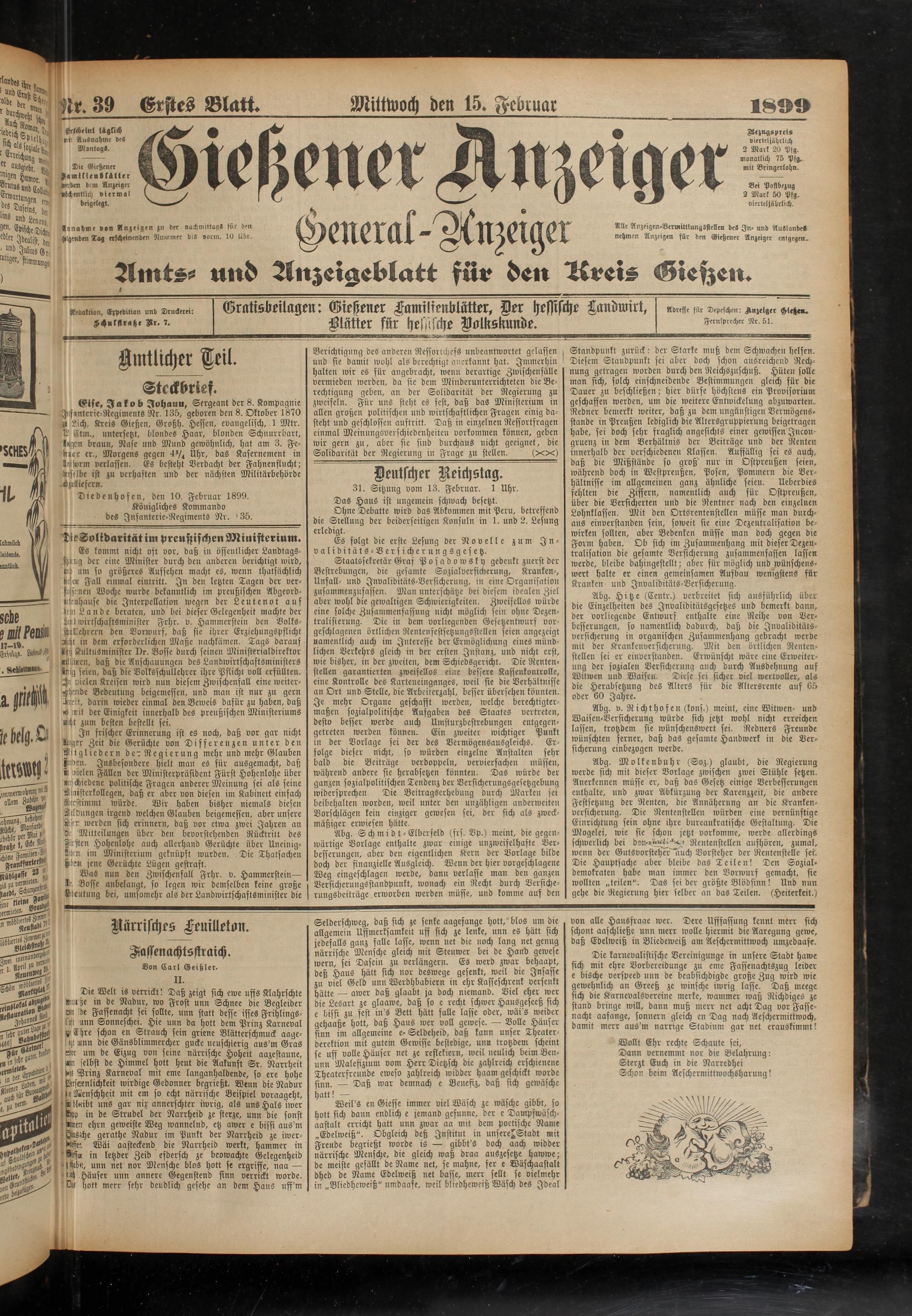 15.2.1899 Erstes Blatt