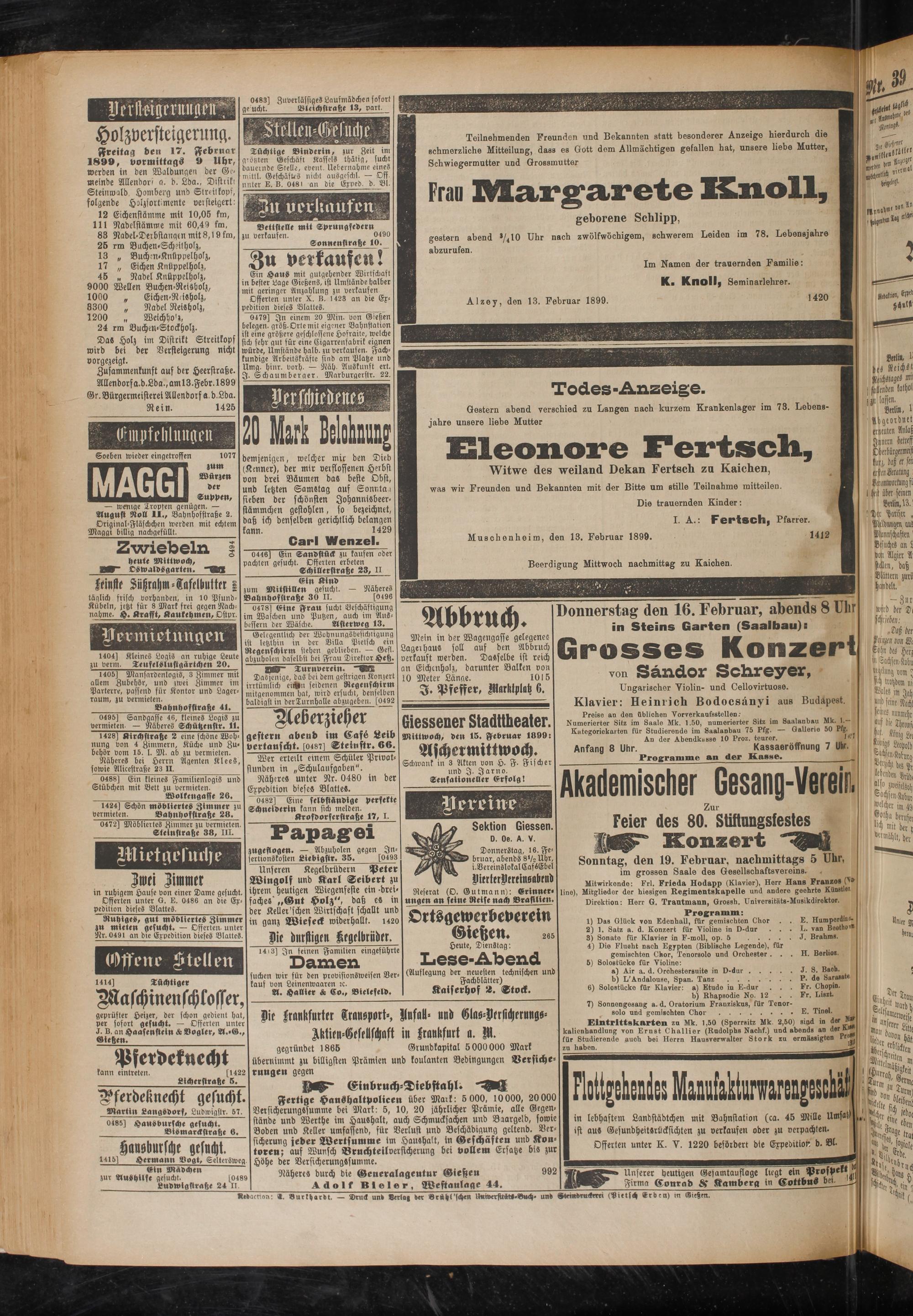 15.2.1899 Erstes Blatt