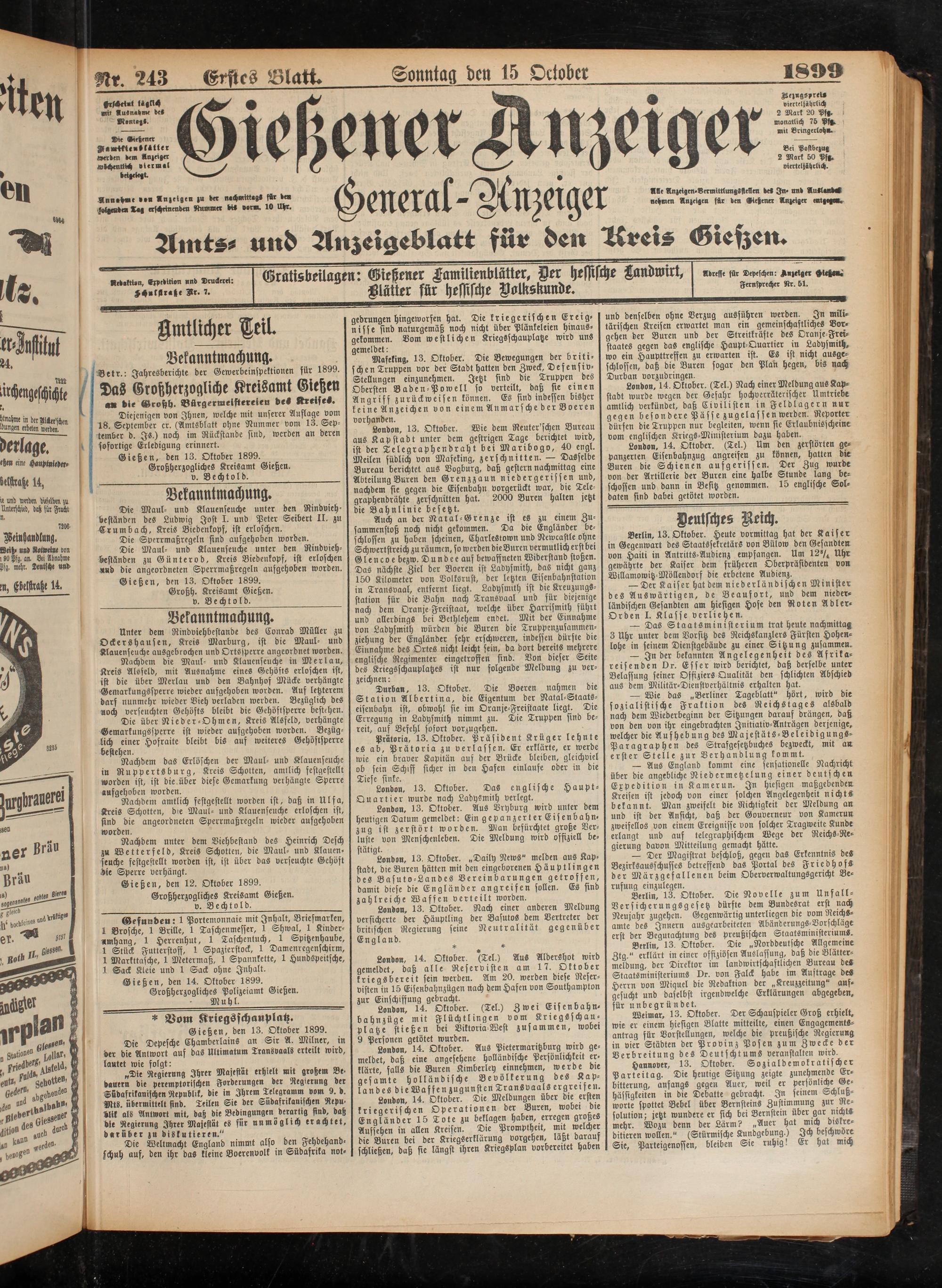 15.10.1899 Erstes Blatt