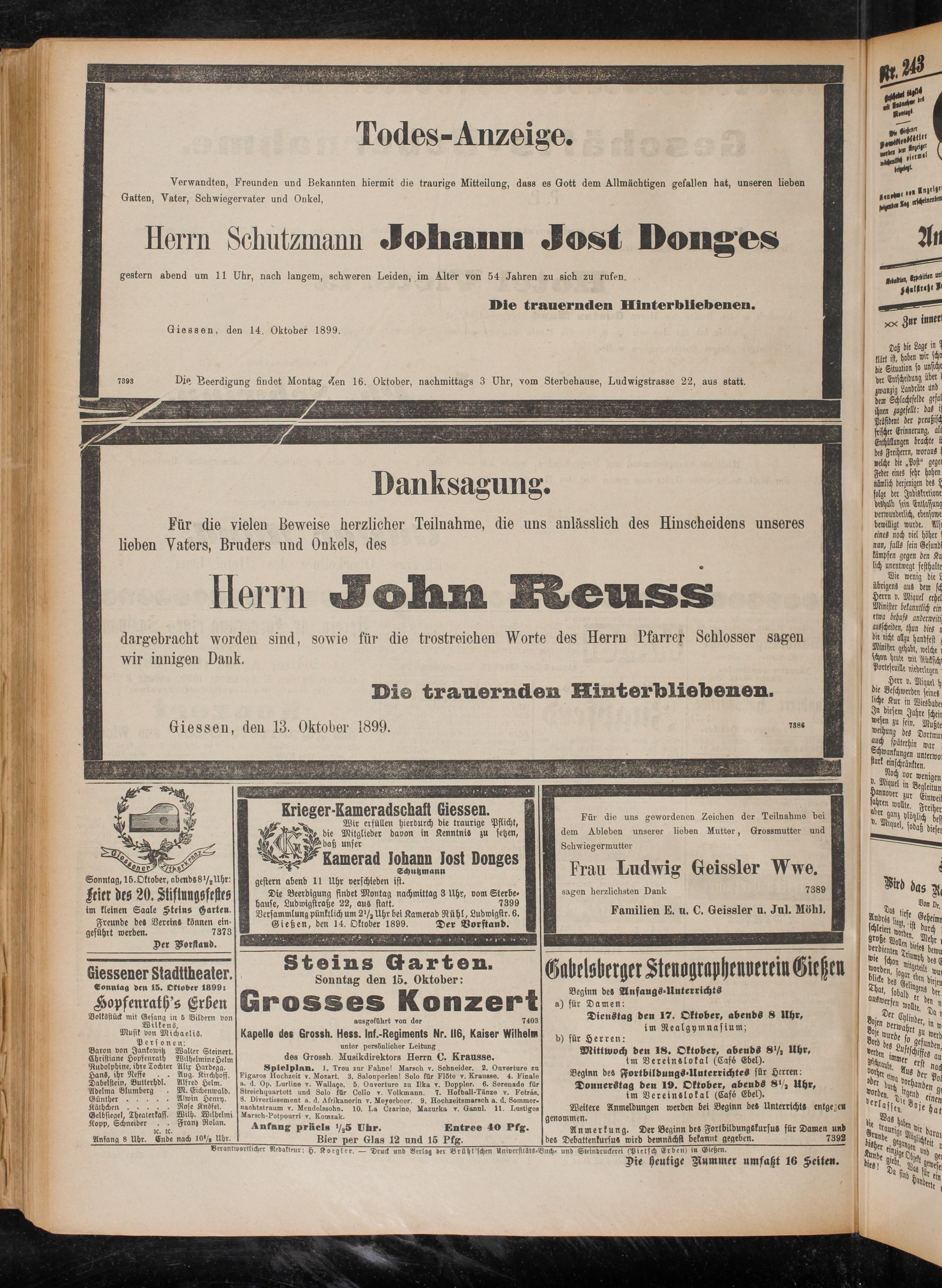 15.10.1899 Erstes Blatt