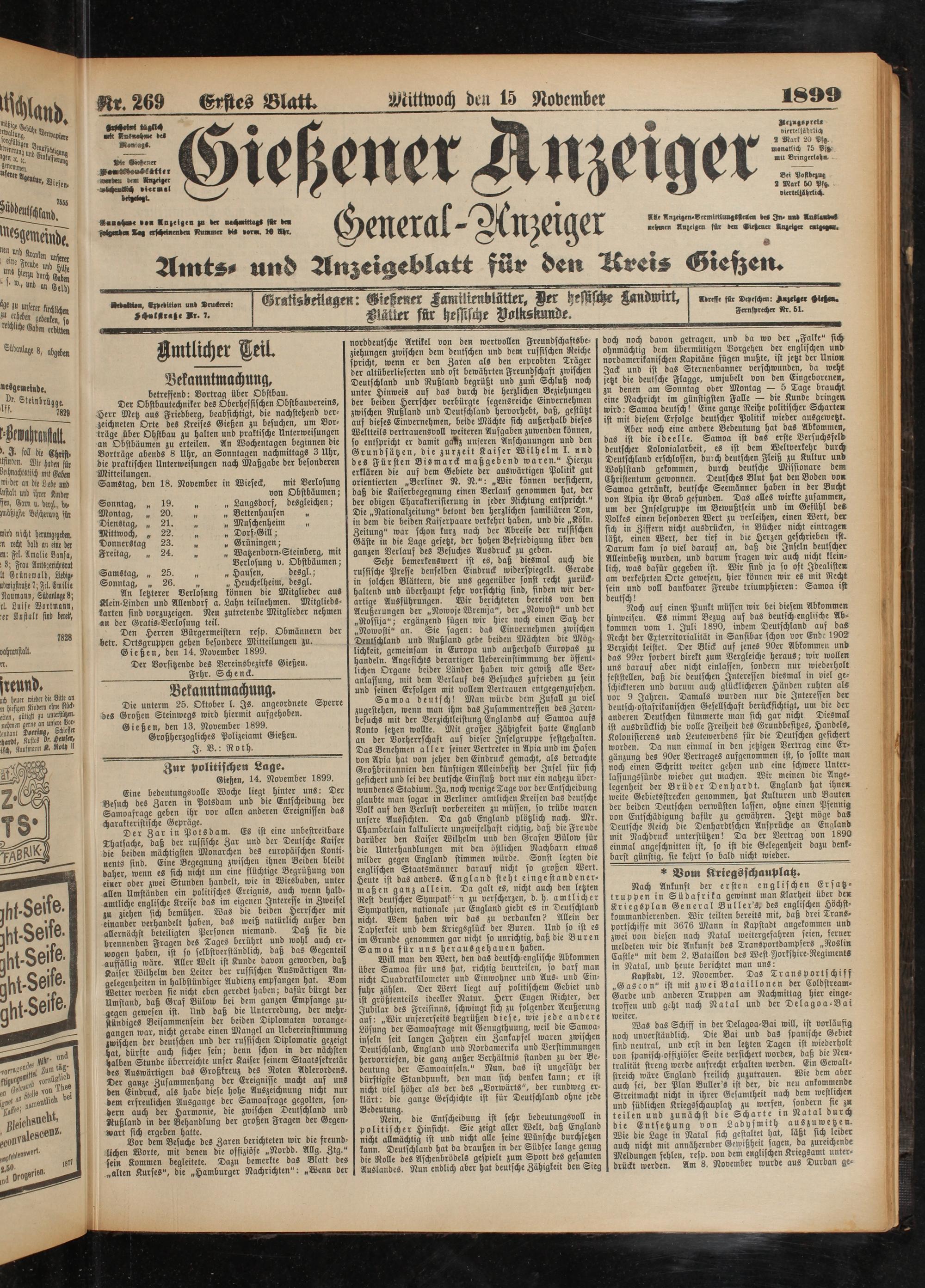15.11.1899 Erstes Blatt