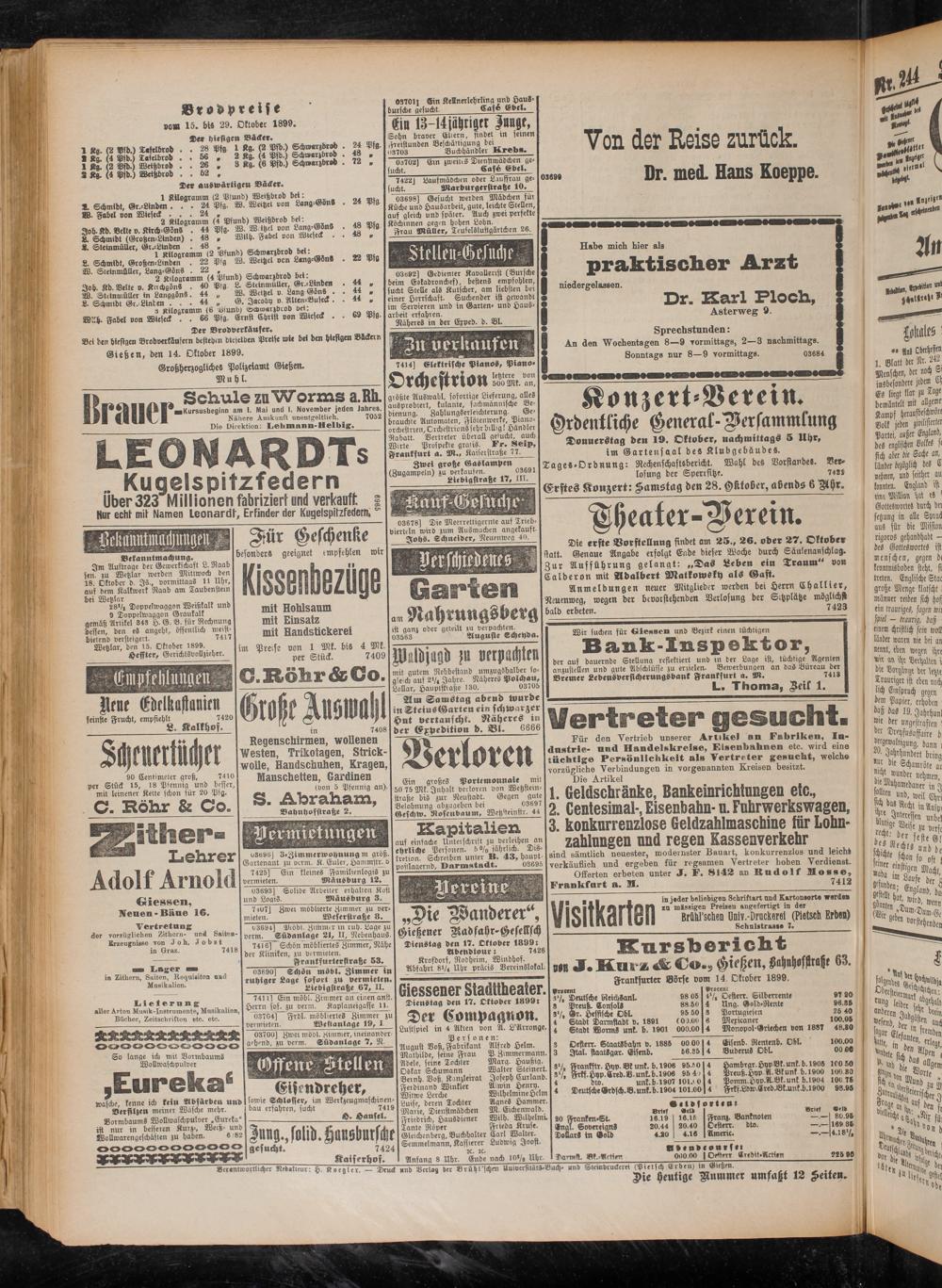 17.10.1899 Erstes Blatt