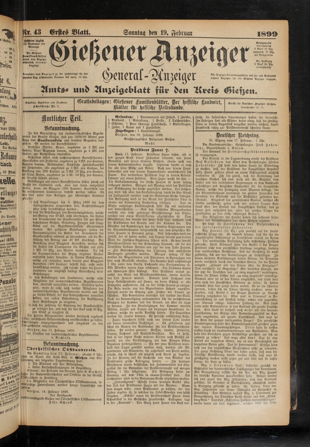 19.2.1899 Erstes Blatt