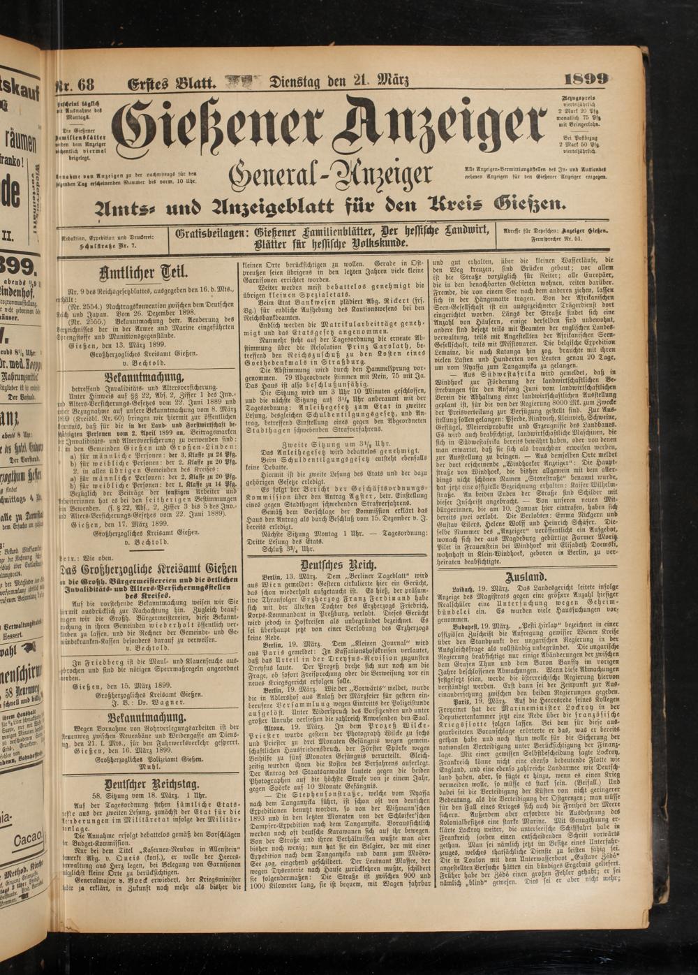 21.3.1899 Erstes Blatt