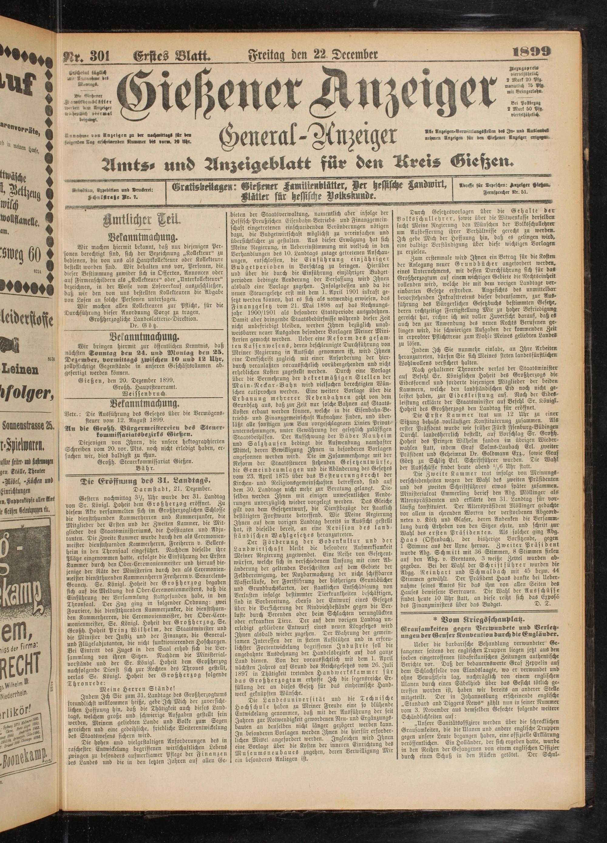 22.12.1899 Erstes Blatt
