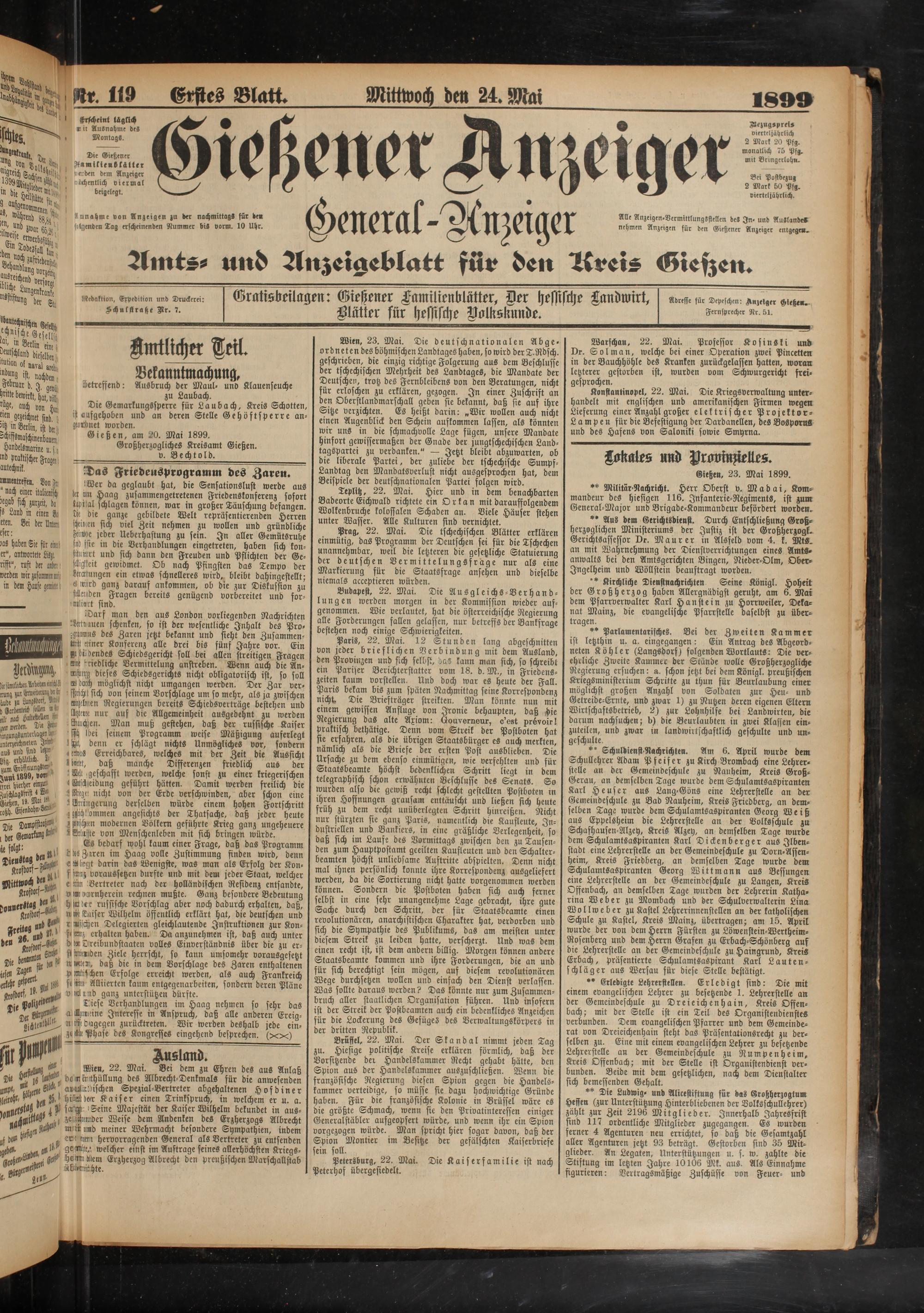 24.5.1899 Erstes Blatt