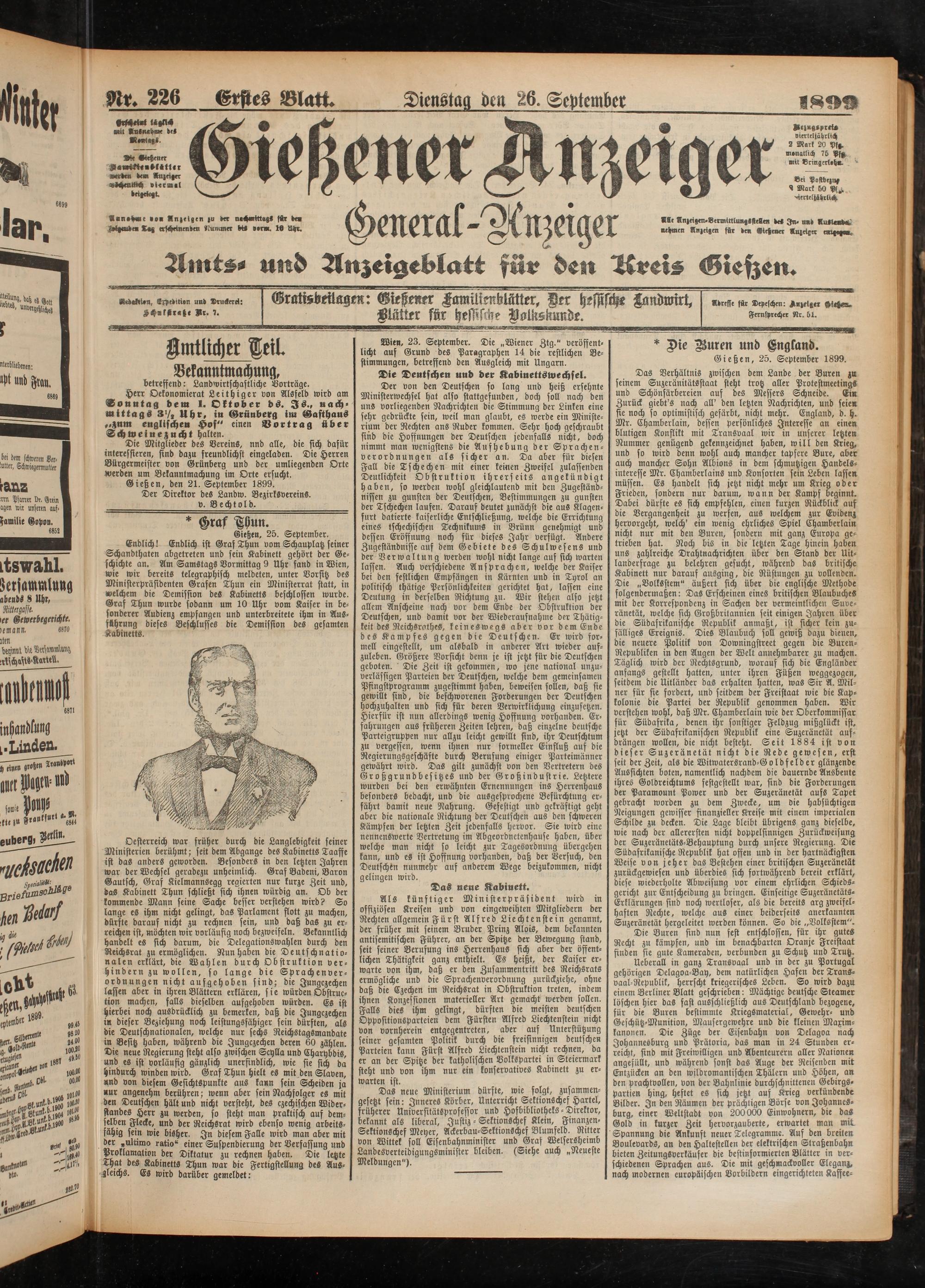26.9.1899 Erstes Blatt