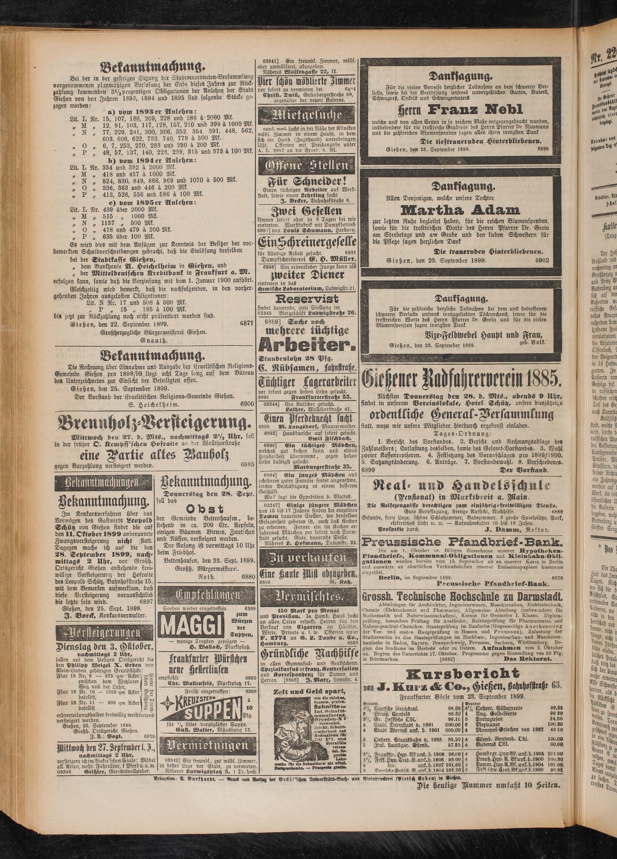 26.9.1899 Erstes Blatt
