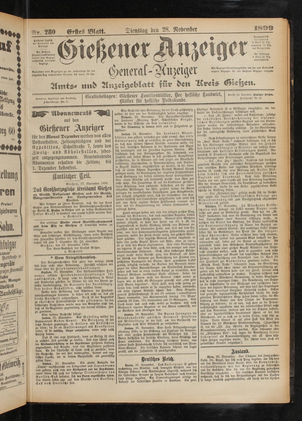28.11.1899 Erstes Blatt