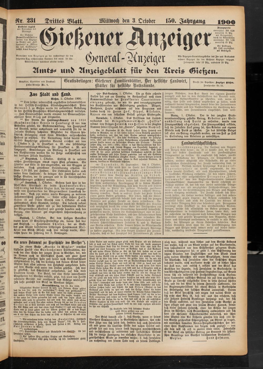 Gießener Anzeiger. 1868-1943