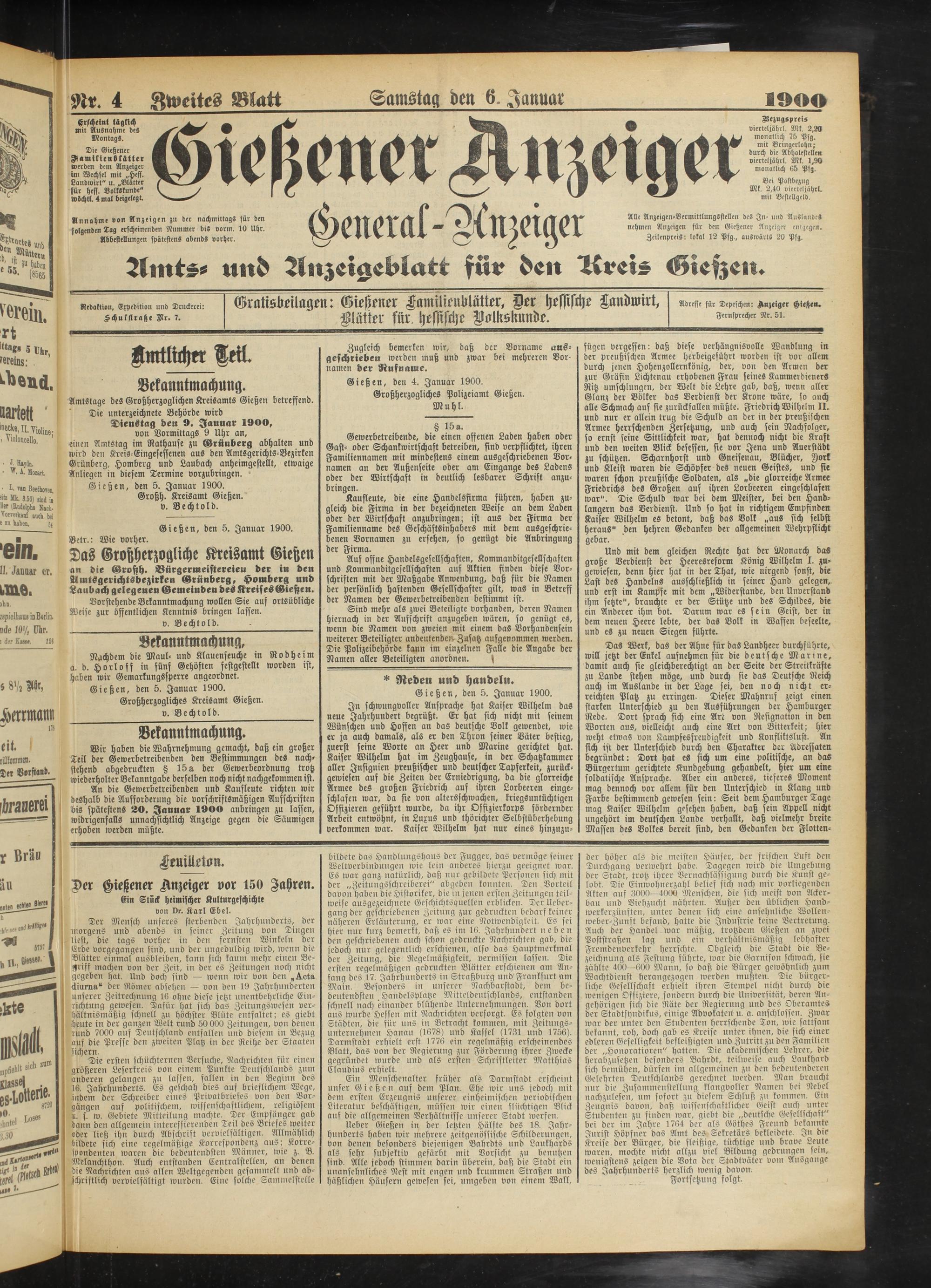 6.1.1900 Zweites Blatt