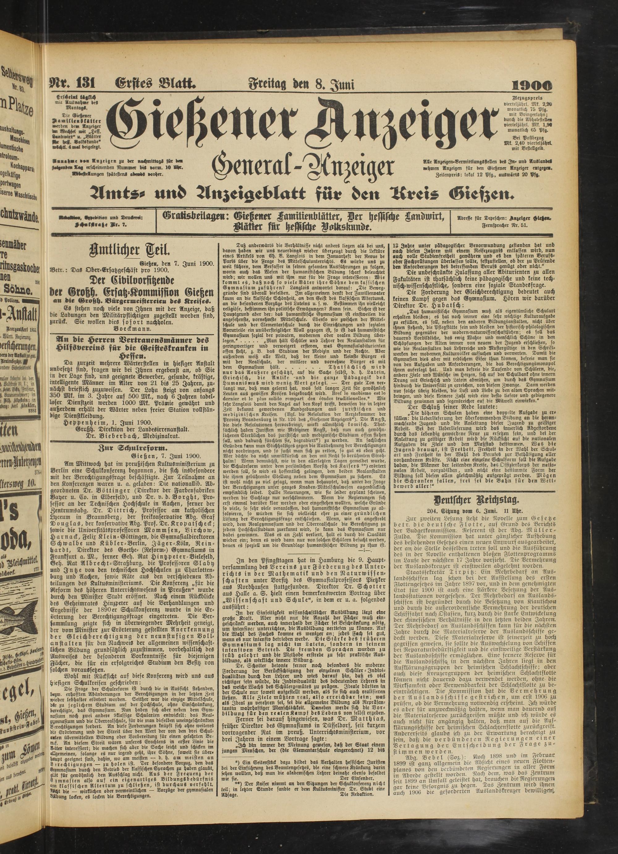 8.6.1900 Erstes Blatt