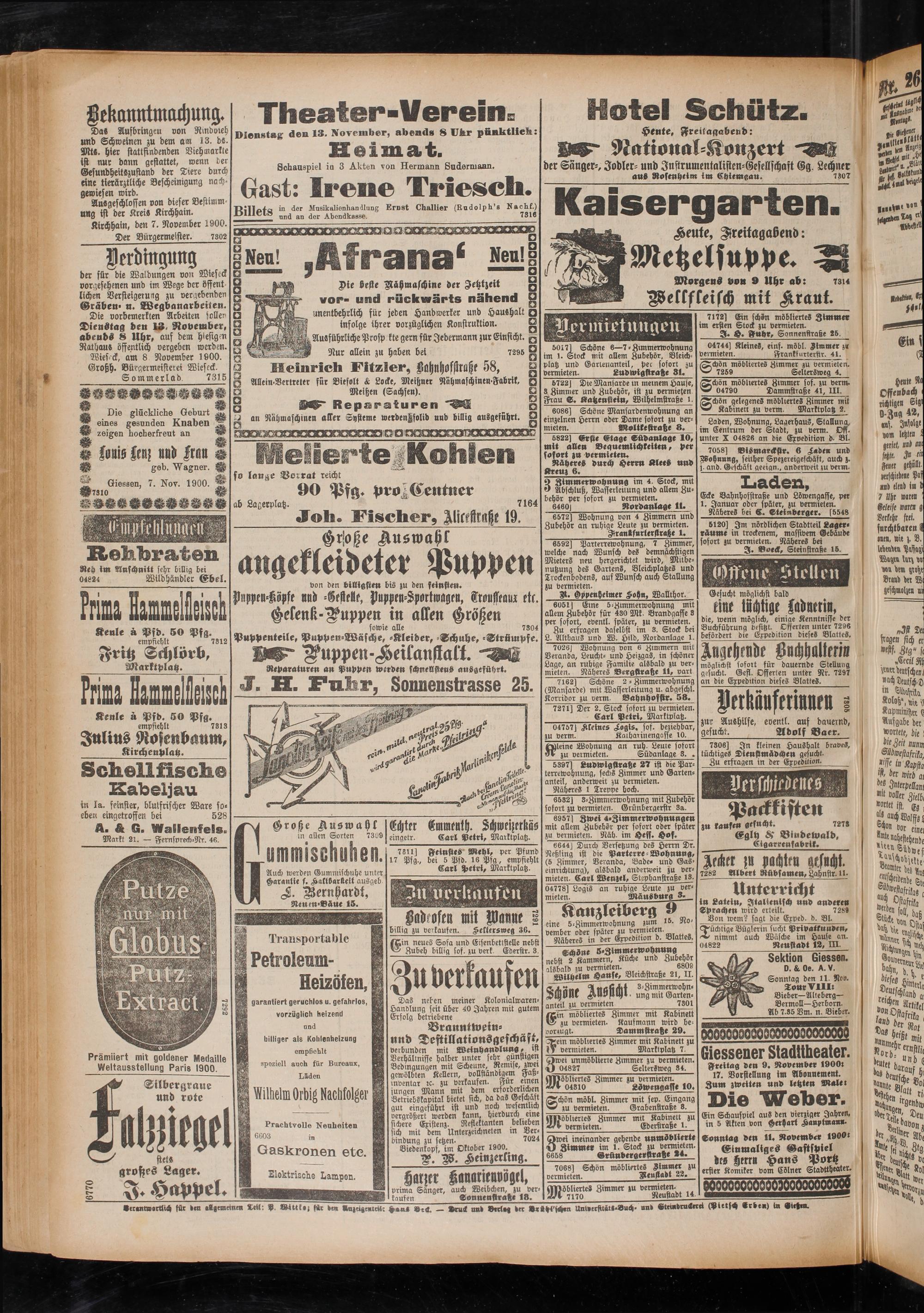 9.11.1900 Zweites Blatt