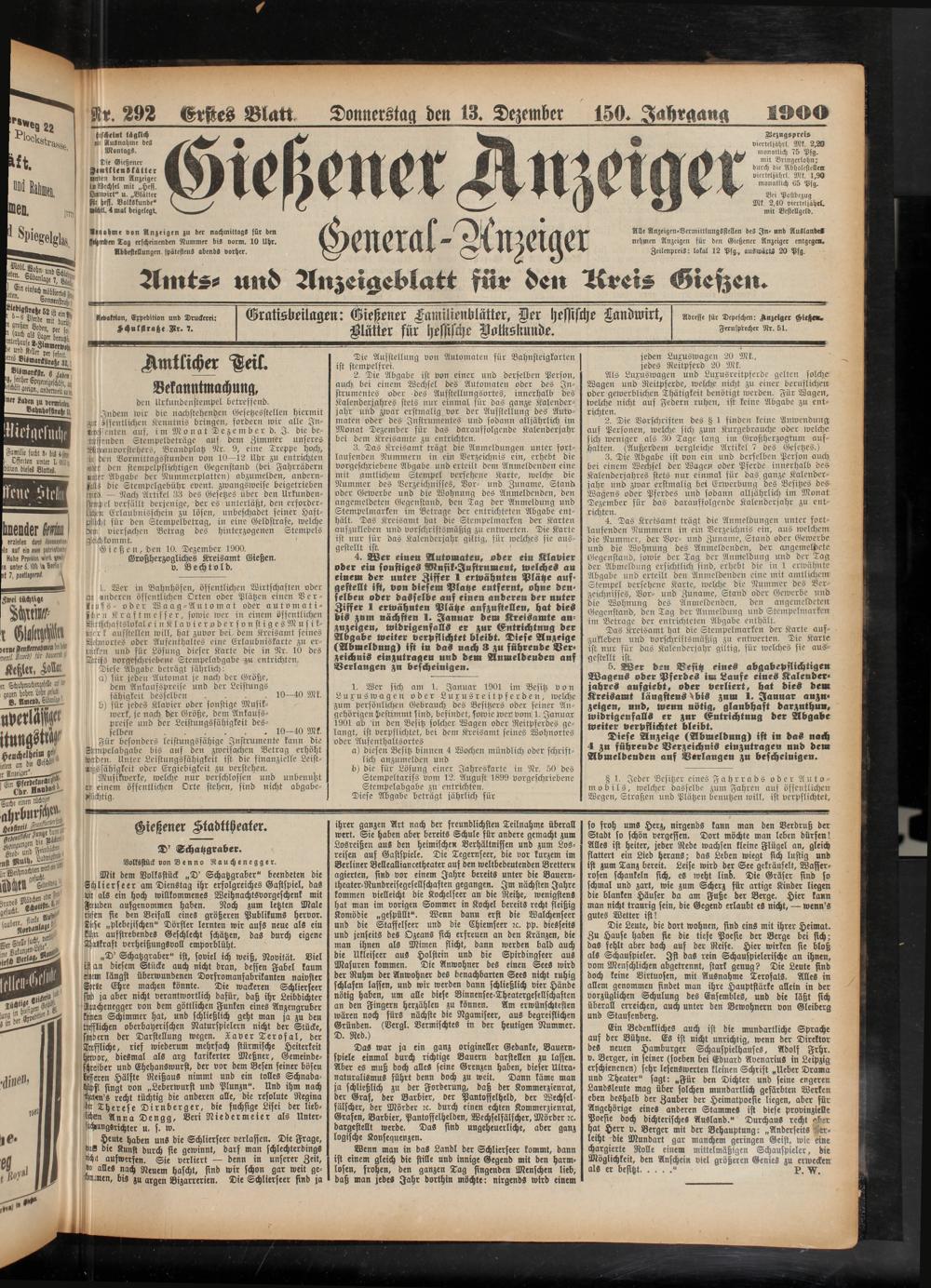 13.12.1900 Erstes Blatt