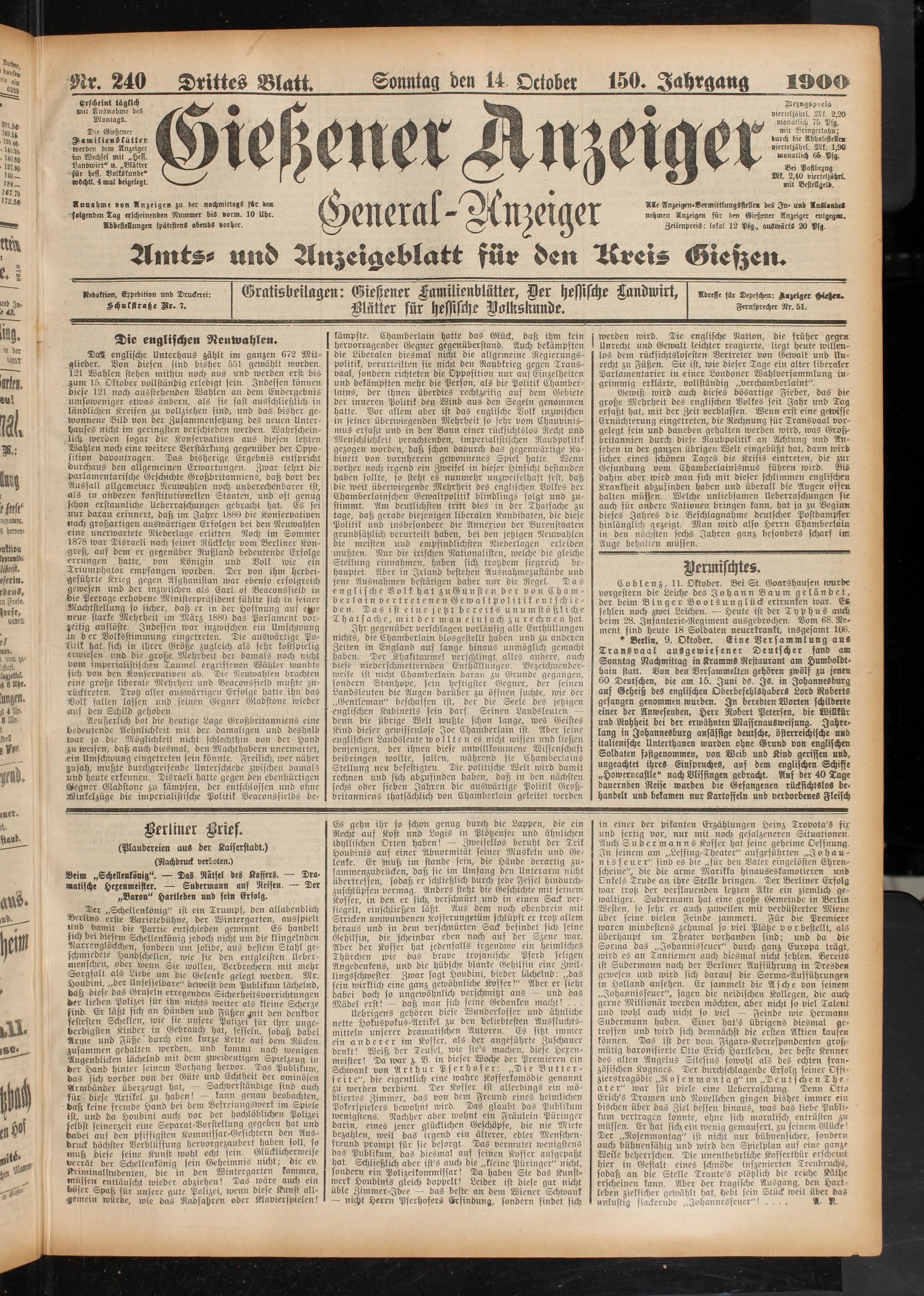 14.10.1900 Erstes Blatt