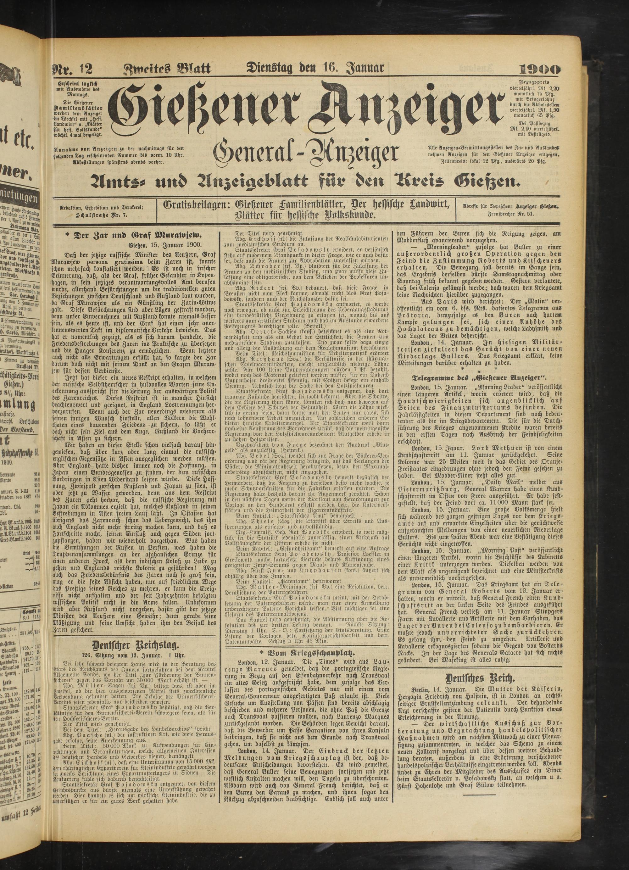 16.1.1900 Zweites Blatt