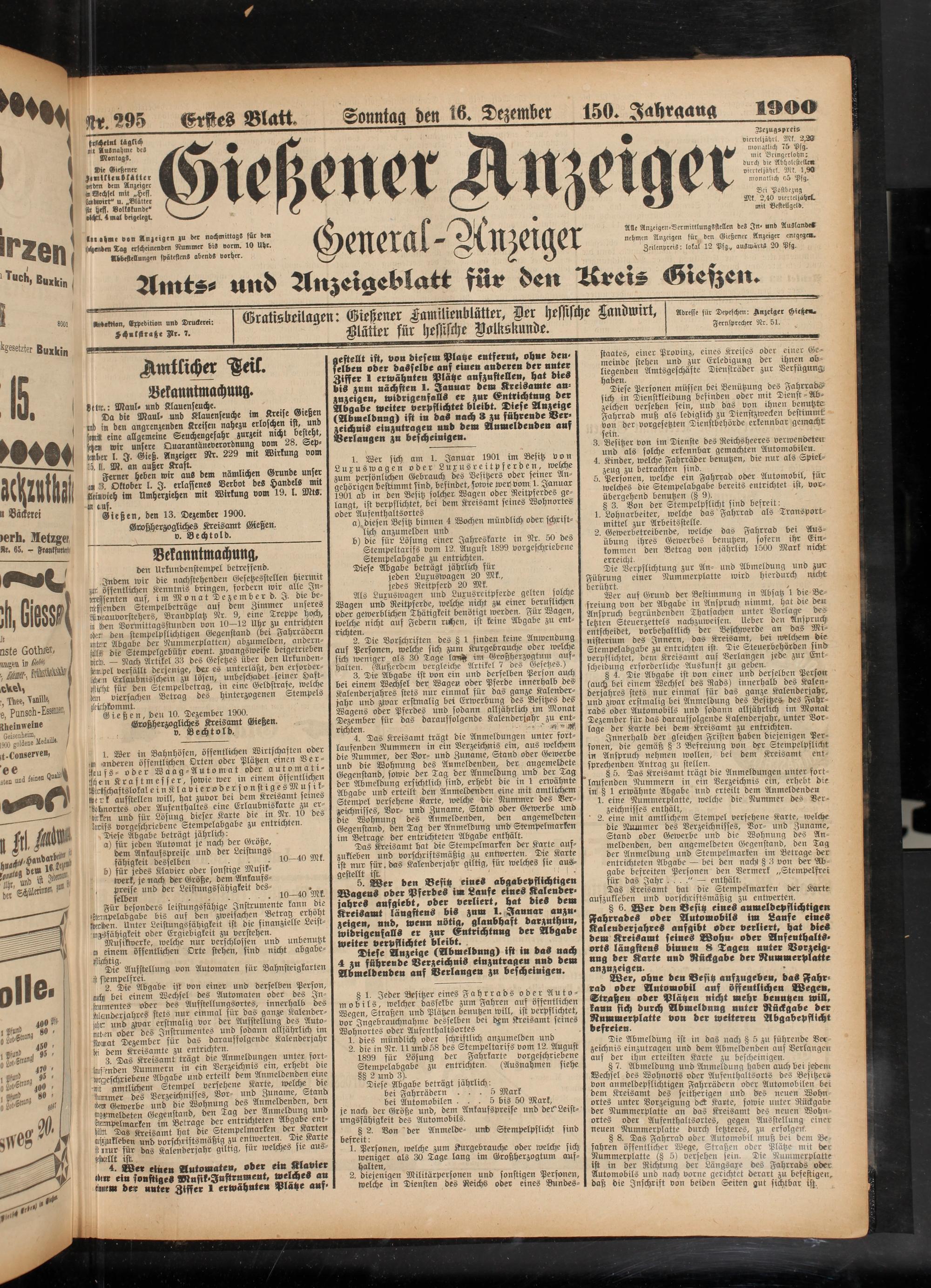 16.12.1900 Erstes Blatt