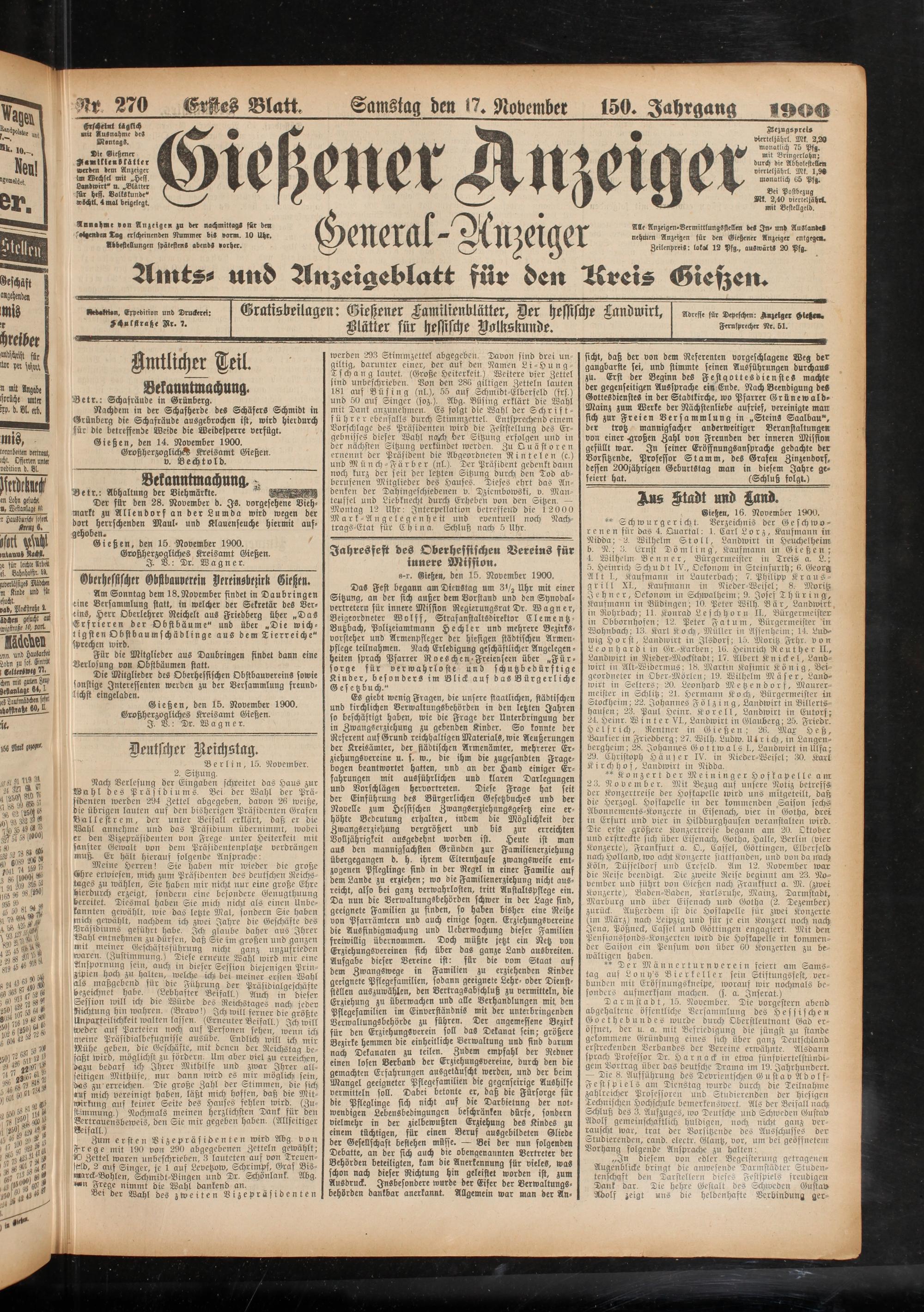 17.11.1900 Erstes Blatt