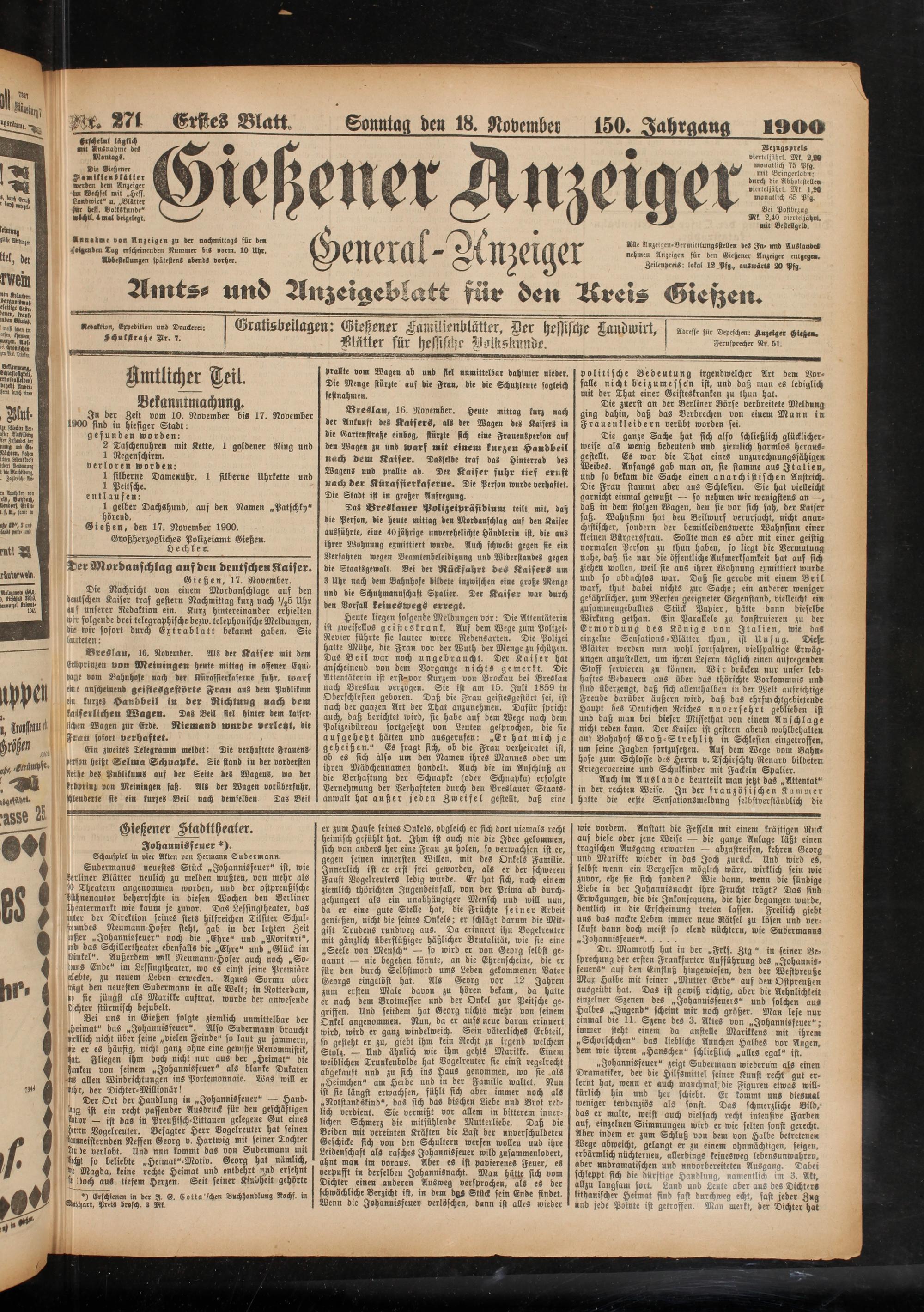 18.11.1900 Erstes Blatt