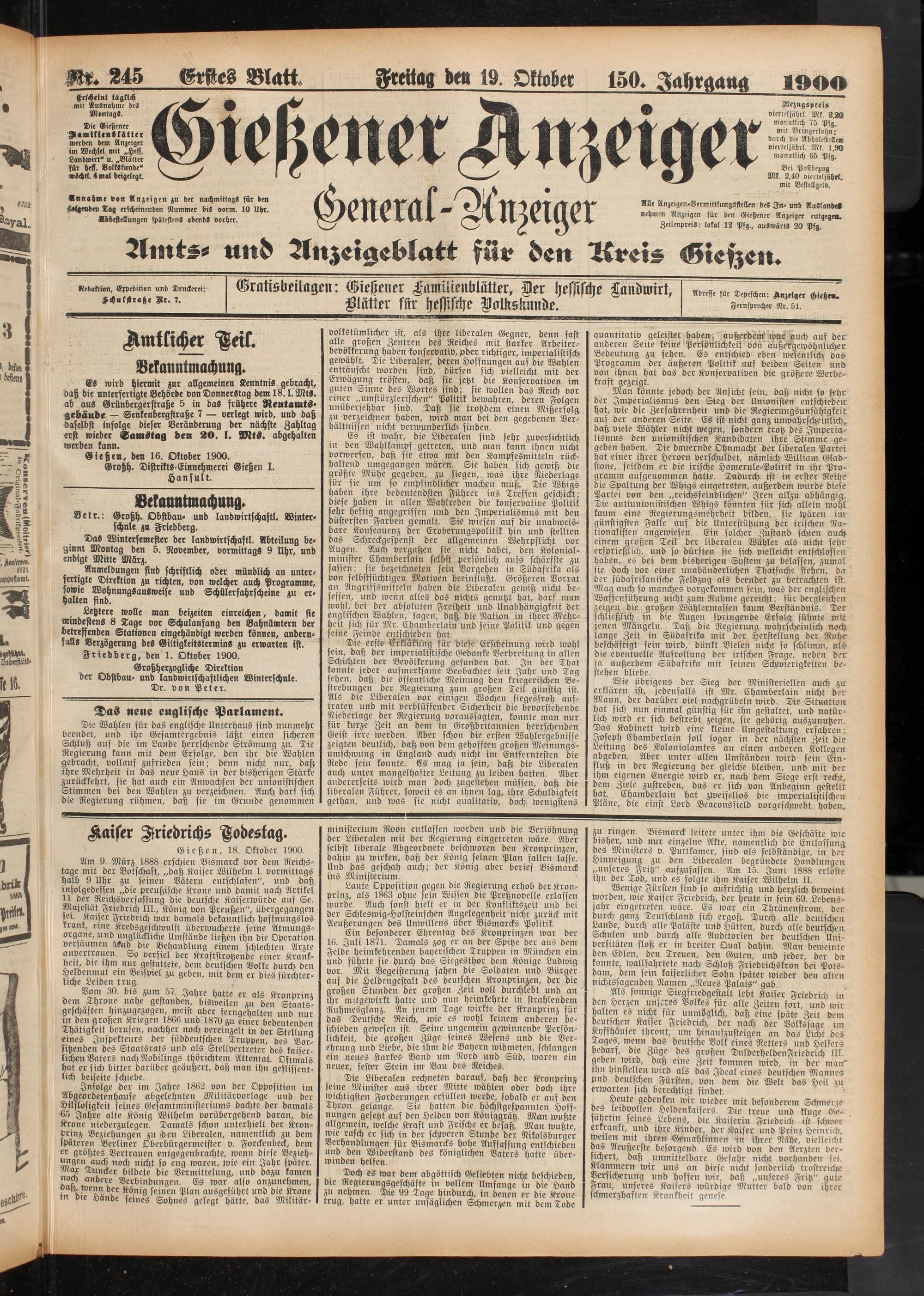 19.10.1900 Erstes Blatt