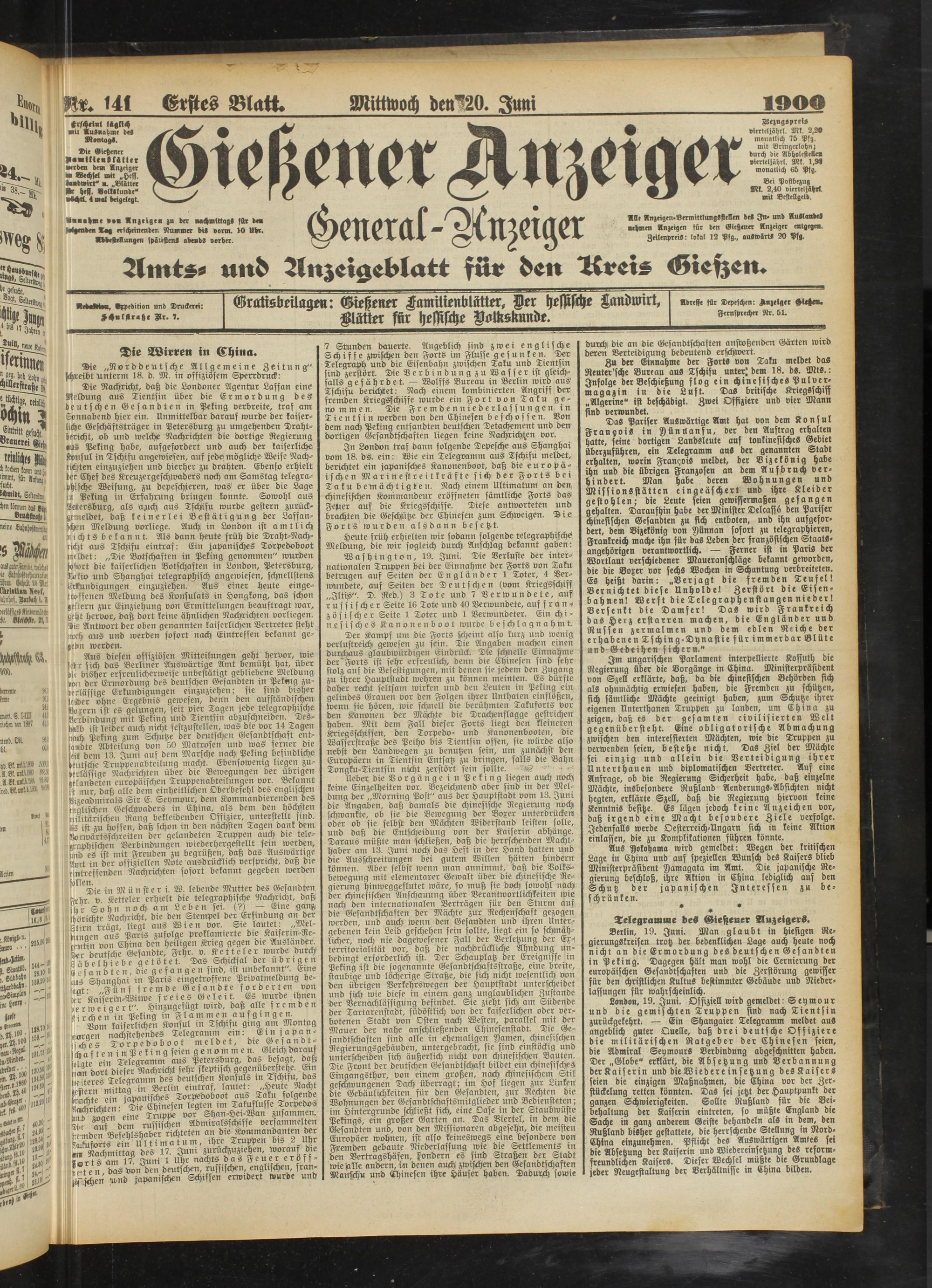 20.6.1900 Erstes Blatt